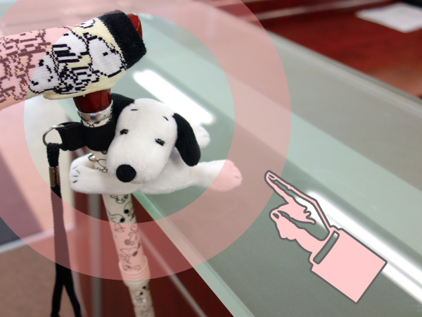 お出掛けも可愛いスヌーピーと一緒に♪倒れ防止に杖ホルダー