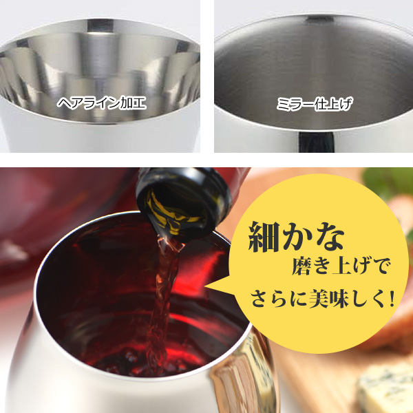●ワインの美味しさを引き立たせるため、職人技によって内面をより細かく磨き上げました。