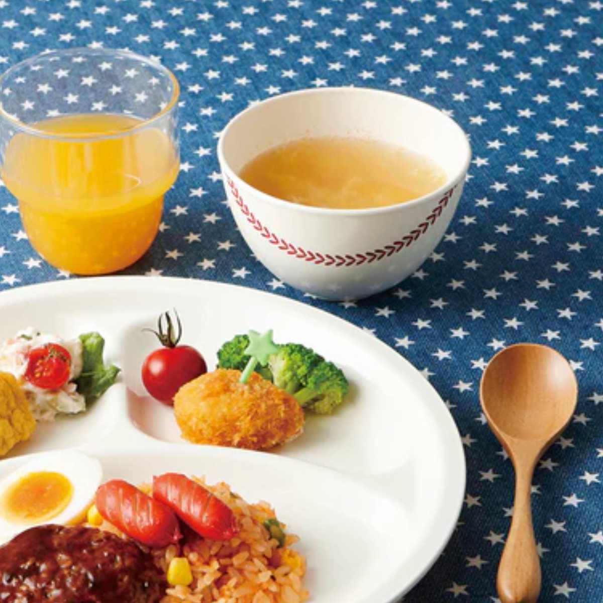 スポーツ好きな元気なお子様におススメしたい野球ボール柄の汁碗です。野球のボールのような赤い縫い目柄が特徴のデザインです。プラスチック製なので、落としても割れないので安心です。