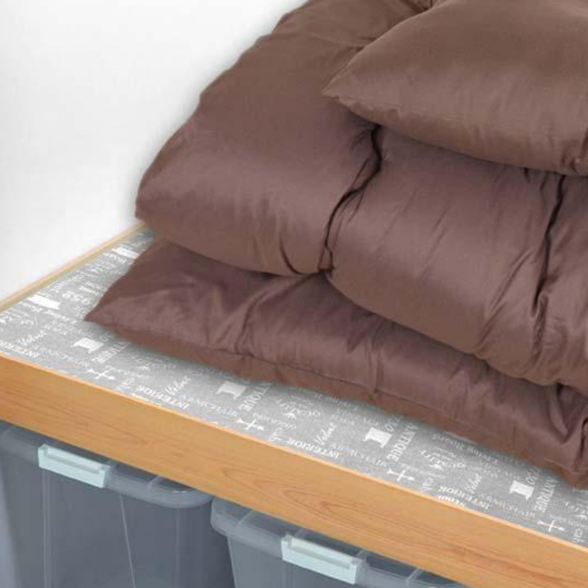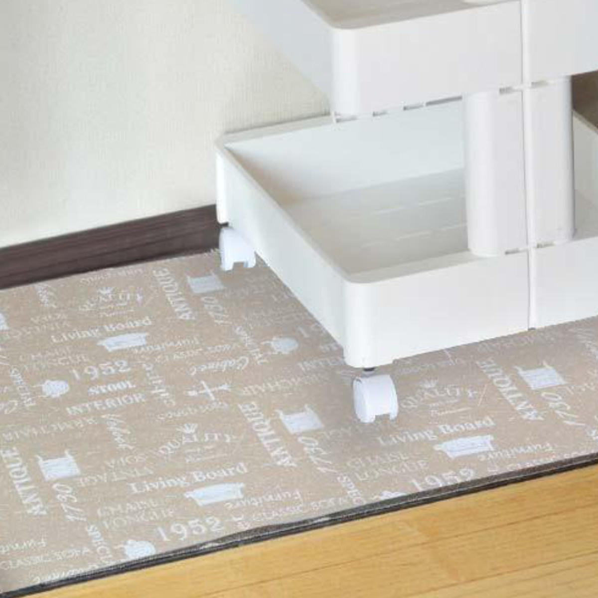 幅90cmと押入れにちょうど良いサイズの敷きシートです。クッション性があるため床面や棚のキズつきを防ぎ、下からの湿気を防いでくれます。機能性に加えて、さりげないオシャレも楽しめるプリント入りです。