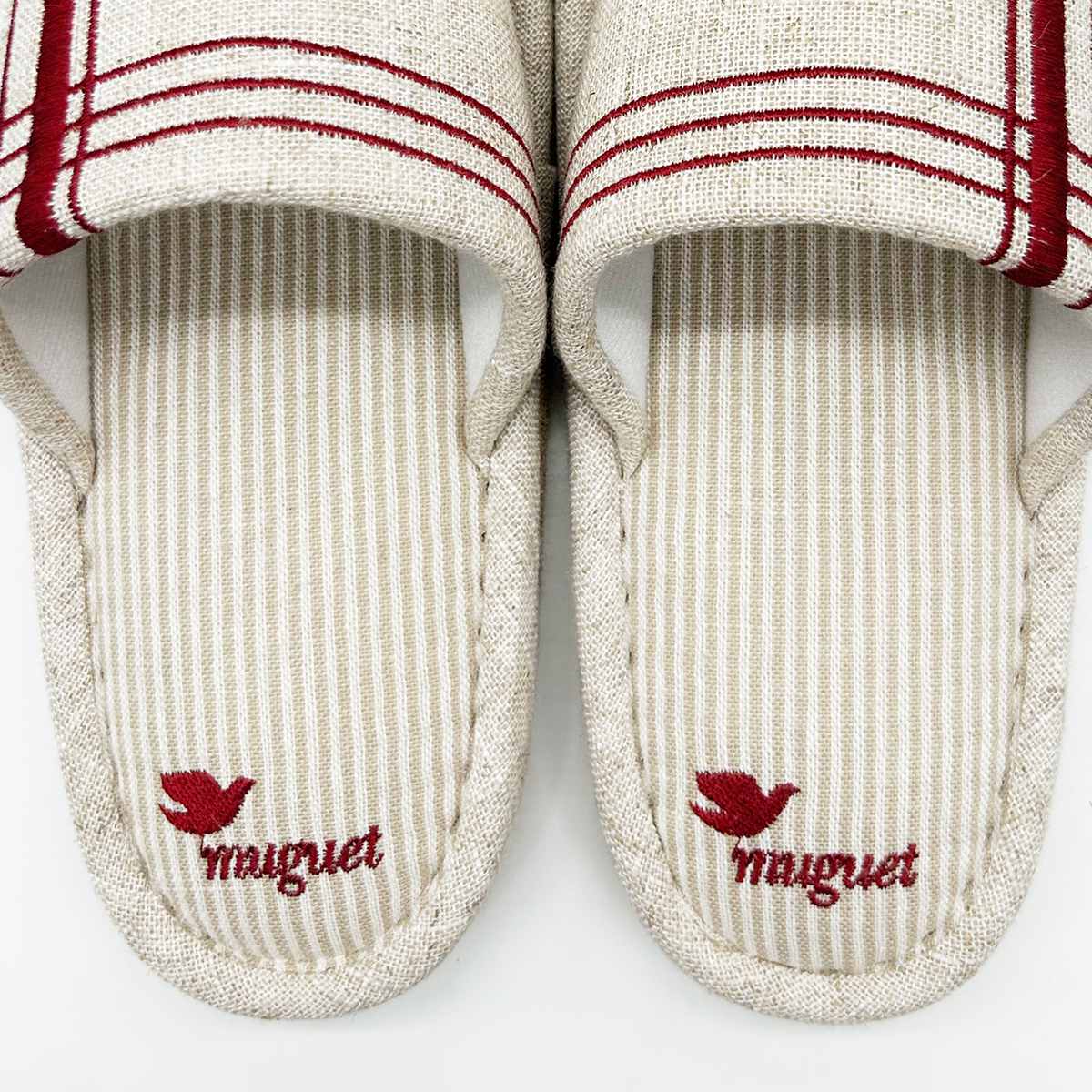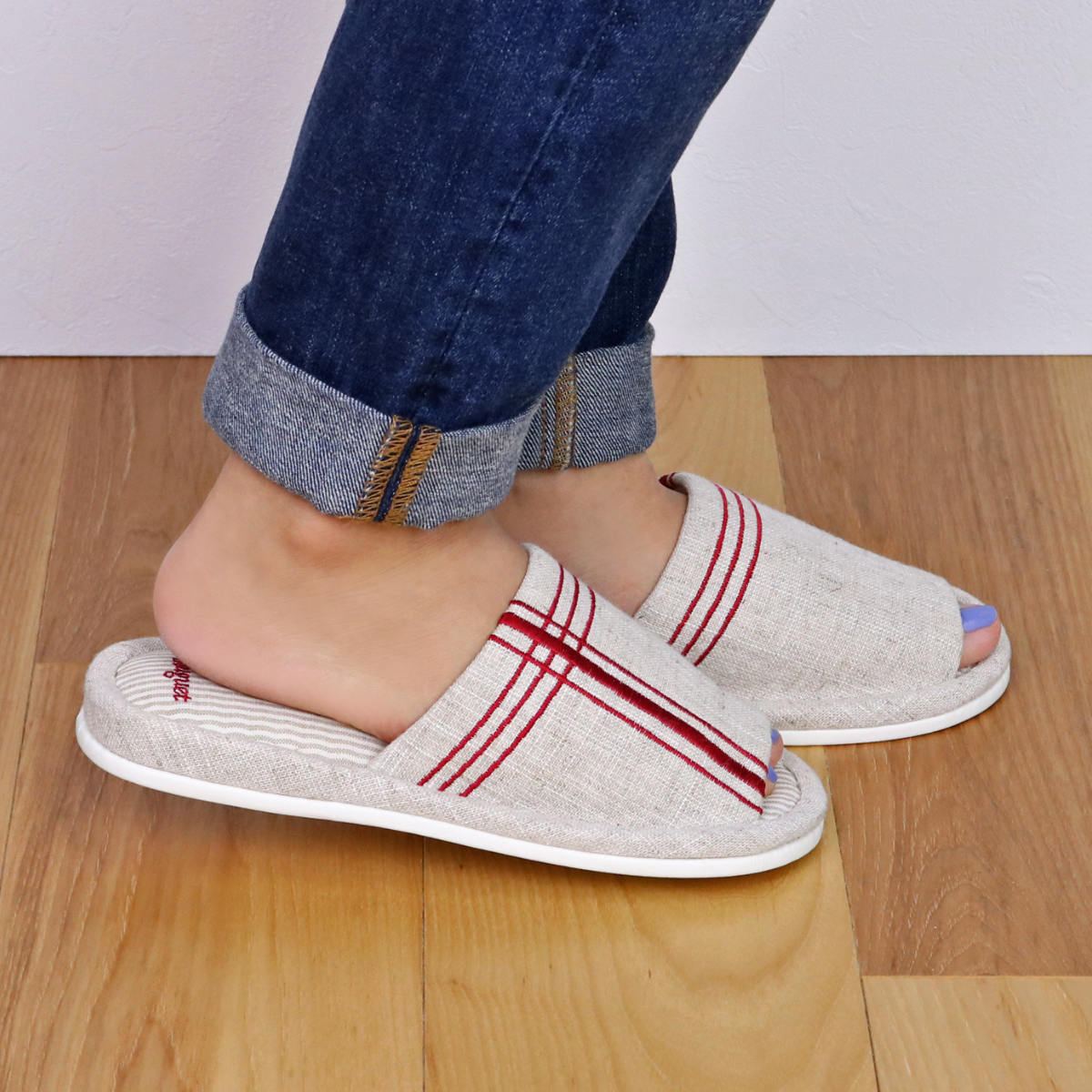 スリッパ ナチュラルクロス外縫い Mサイズ ( ルームシューズ ルームスリッパ おしゃれ 刺繍 自宅 室内 室内履き 部屋履き レディース ルームサンダル 外縫い 女性用 前開き 前あき オフィス 来客用 蒸れにくい )