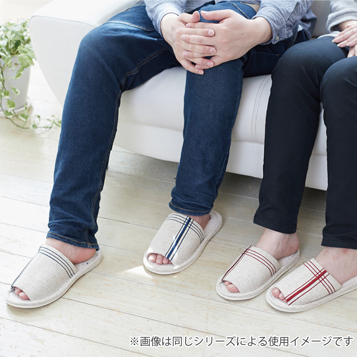 ナチュラルでシンプルな、作りがかわいいカントリー調のスリッパです。シンプルながら、甲部分のラインがアクセントになっています。様々なテイストのインテリアに合わせやすく、ご自宅用だけでなく職場用としてもおすすめです。
