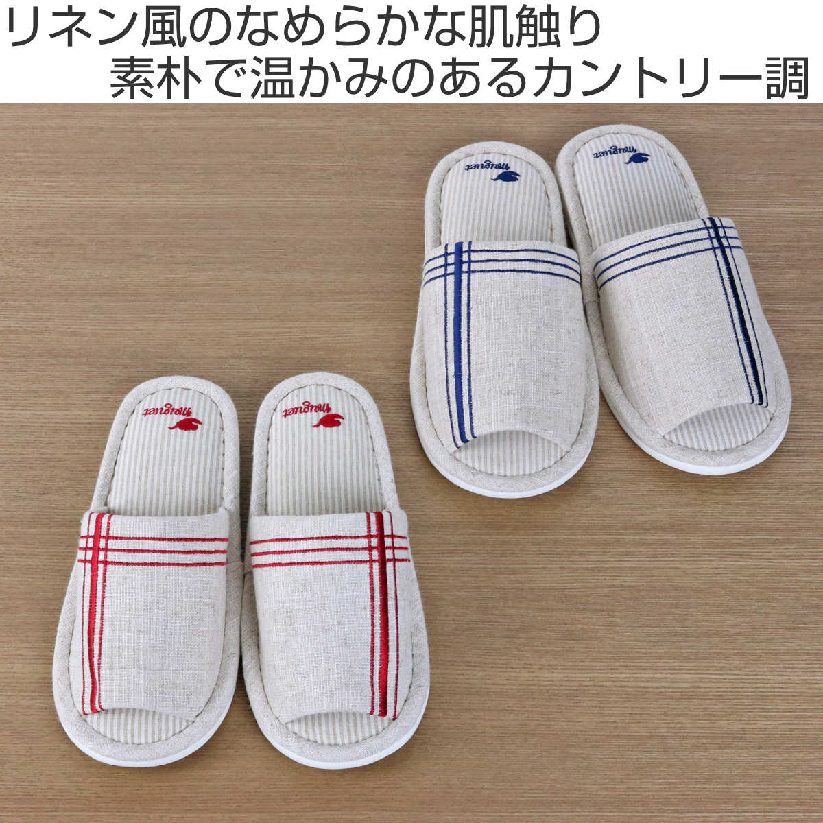 ナチュラルでシンプルな、作りがかわいいカントリー調のスリッパです。シンプルながら、甲部分のラインがアクセントになっています。様々なテイストのインテリアに合わせやすく、ご自宅用だけでなく職場用としてもおすすめです。