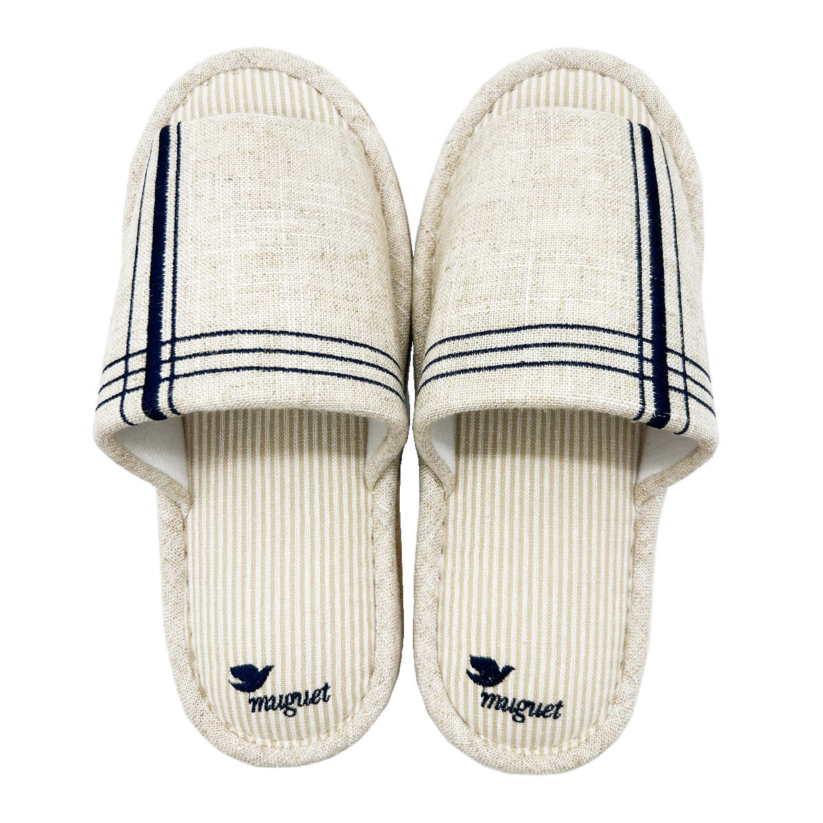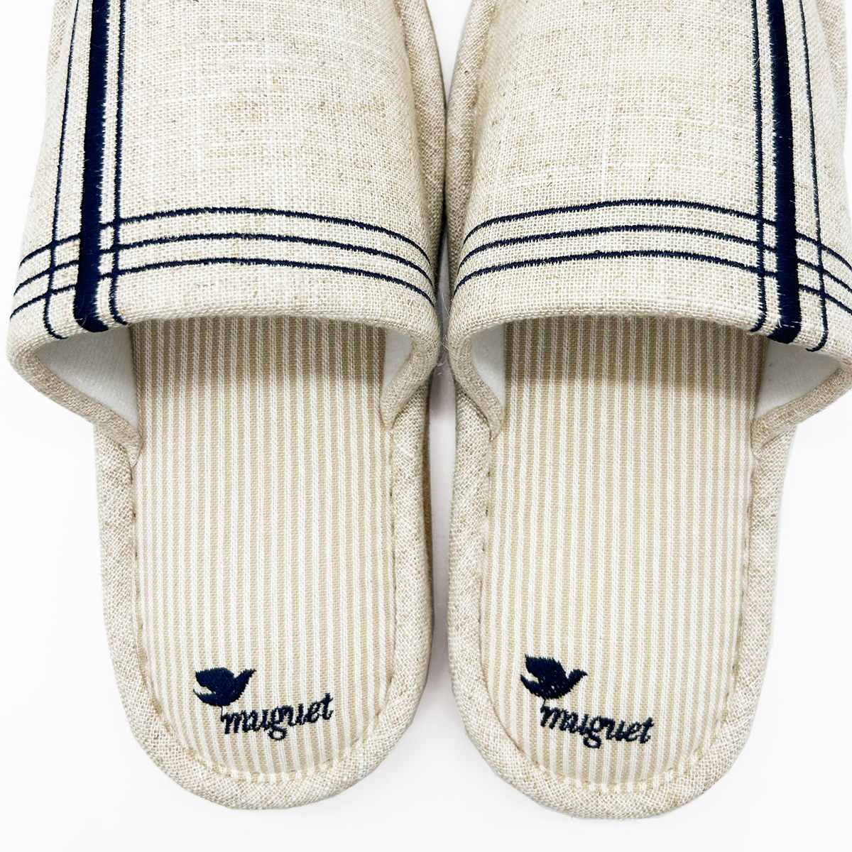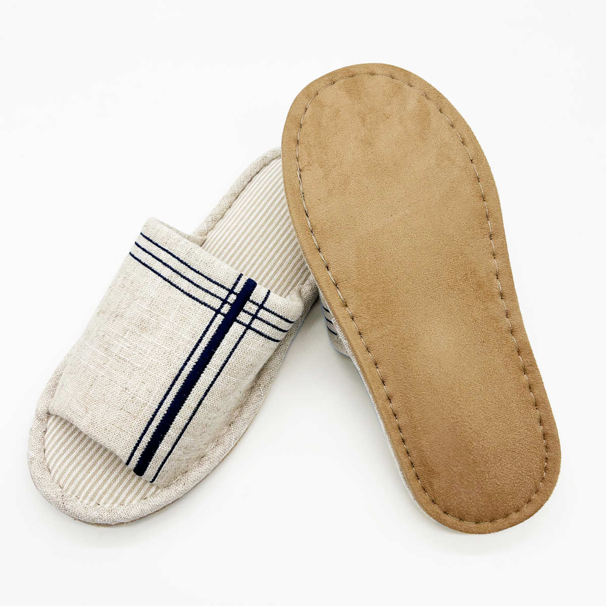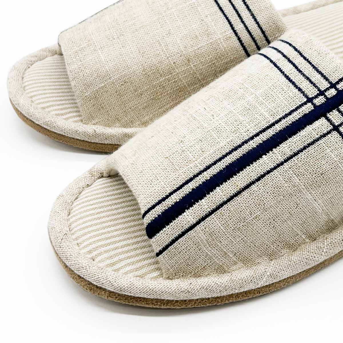 スリッパ ナチュラルクロス外縫い Lサイズ ( ルームシューズ ルームスリッパ おしゃれ 刺繍 自宅 室内 室内履き 部屋履き メンズ ルームサンダル 外縫い 男性用 前開き 前あき オフィス 来客用 蒸れにくい )