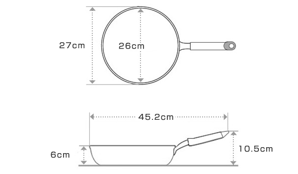 | 材質 | 本体:アルミニウム合金(底厚4mm) 本体内面:フッ素樹脂塗膜加工 本体外面:研磨仕上げ ハンドル:木材 |