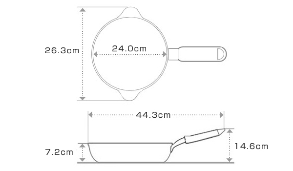 | 材質 | 本体:アルミニウム合金 張り底:18crステンレス鋼 取っ手:フェノール樹脂 【表面加工】 内面:ふっ素樹脂塗膜加工 外面:焼付け塗装 |
