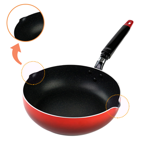 注ぎ口がフライパンの両口についているので、どちらからでも注ぎやすいです。パスタ、汁物、炒め物等色々なお料理を調理しやすい深型タイプのフライパンです。