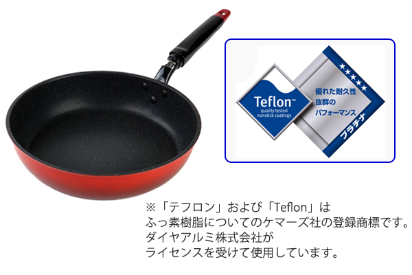 ●こびりつかず、お手入れ簡単な「テフロンプラチナ加工」+マーブル加工を採用しています。