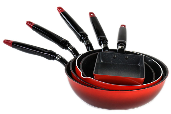 小さなフライパンから一般的なサイズのフライパン・深型フライパン・卵焼き器等さまざまな形状のフライパンがあるので、全部揃えるのもオススメです。また、落ち着いた赤色で使いやすい商品なので、セットで贈り物にも最適です。