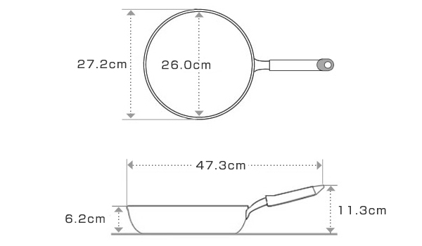 | 材質 | 本体:アルミニウム合金 張り底:18crステンレス鋼 取っ手:フェノール樹脂 【表面加工】 内面:ふっ素樹脂塗膜加工 外面:焼付け塗装 |