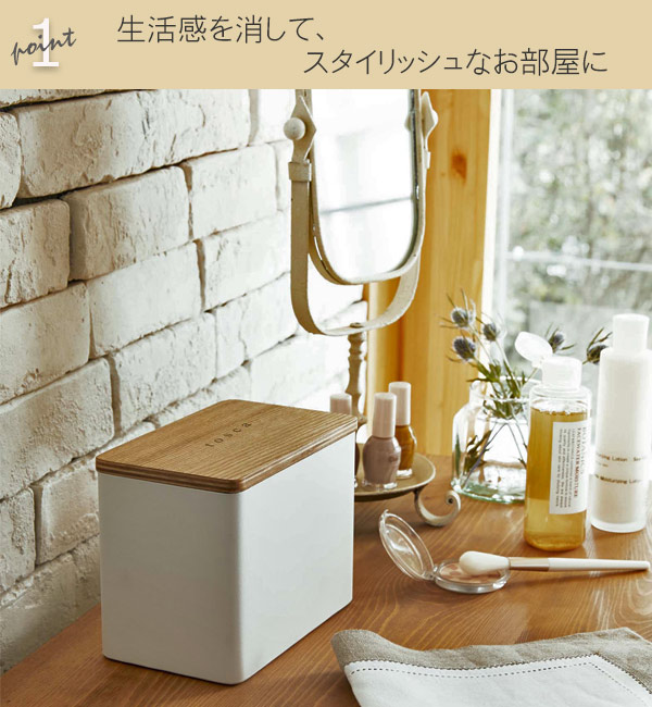 メイクや身支度は毎日の事だから、小物周りはキレイにしておきたいですよね。 このコットンストッカーは、表情のあるスチールと温かみのある木の蓋が優しく、ナチュラルな印象。ひとつのインテリアのような佇まいで、生活感を消してくれます。