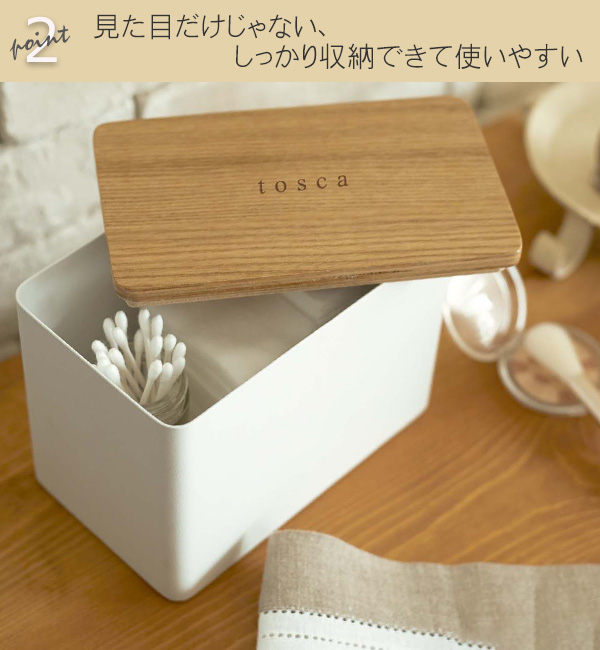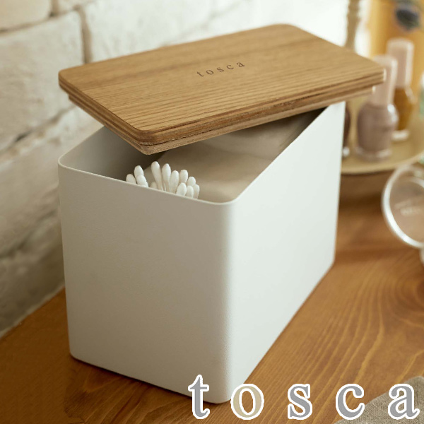 コットンケース tosca トスカ ( コットン 収納 洗面用品 コットン収納 小物収納 スキンケア用品 スキンケア 綿棒 洗面グッズ 洗面周り 木目調 ウッド )