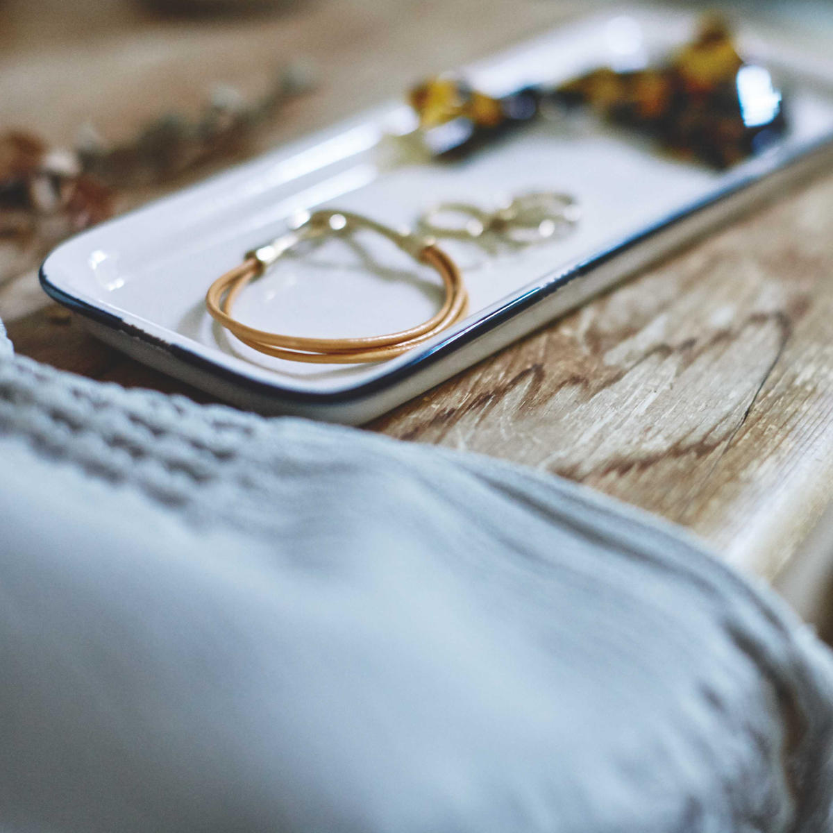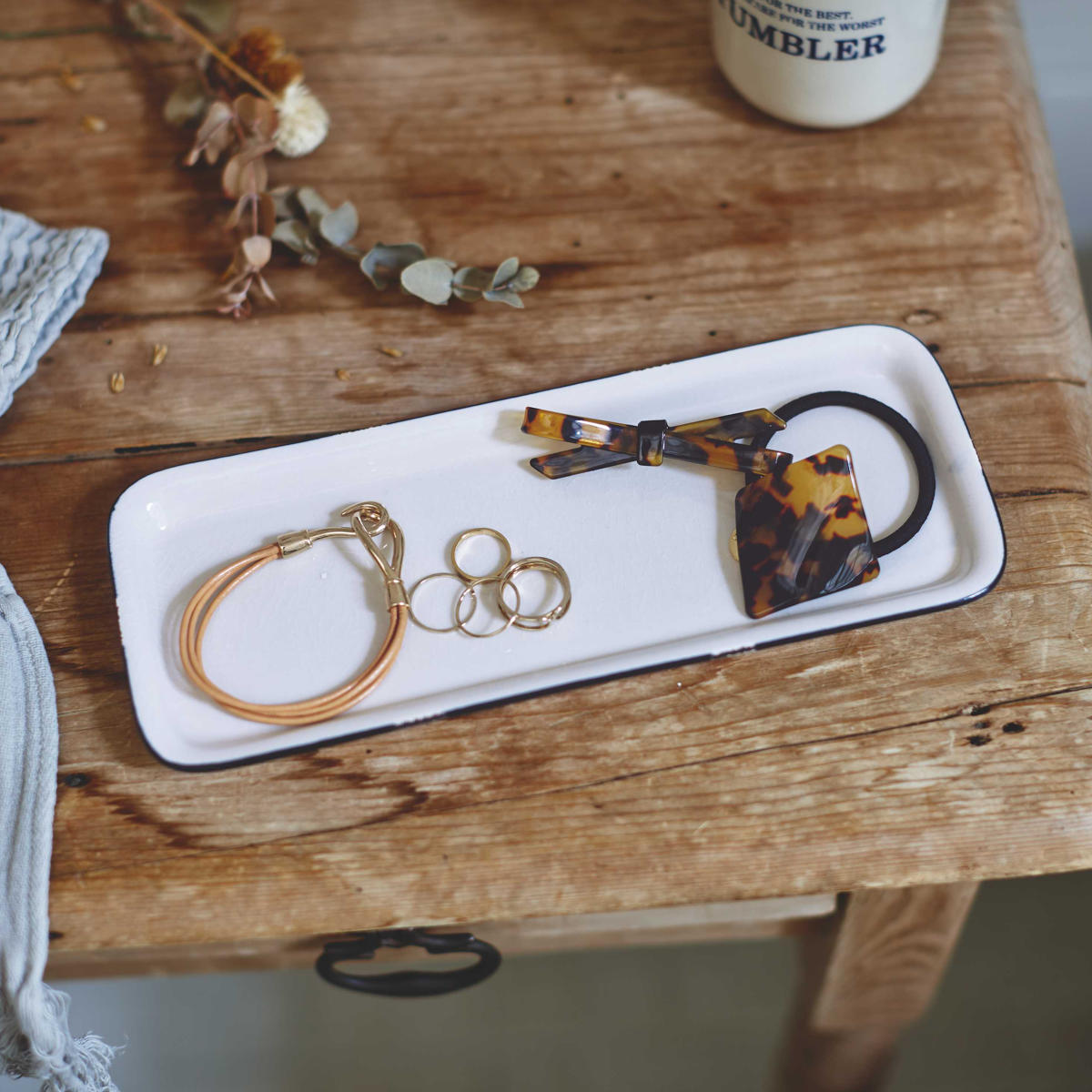 洗面スペースやバスルームをワンランク上の空間に仕上げる、爽やかなデザインのマルチトレーです。洗顔時にアクセサリーの一時置きスペースとして活用できます。