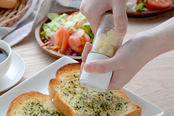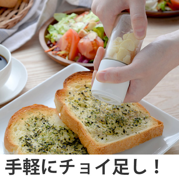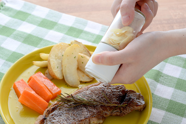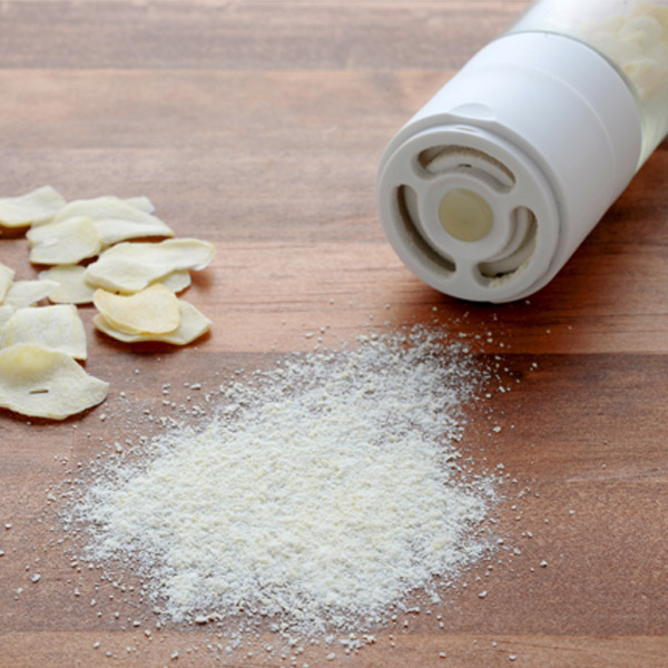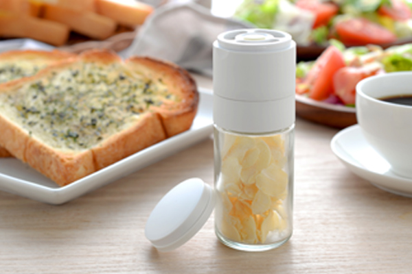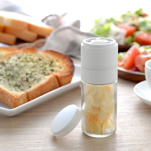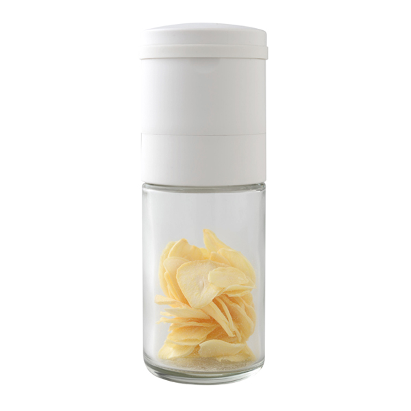 セラミック刃を使った乾燥ガーリックチップ用ミルです。普段の料理にチョイ足しして気軽にニンニク風味を楽しめます。