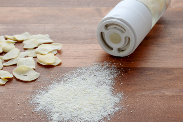 細かな粉末になるので、料理にもなじみやすいです。またガーリックチップ以外にも煮干しや鰹節、桜えびなども粉末にできます。