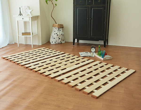 立てるだけでそのまま布団干しが出来る、3つ折れマットレスに最適なすのこベッドです。いつでも手軽に部屋干しができるので、雨天時も花粉の季節も安心です。