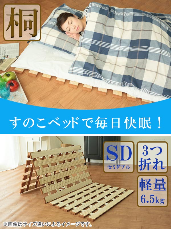 すのこベッド セミダブル 3つ折れ 薄型 折りたたみ すのこマット 桐製 軽量 ( スノコベッド スノコマット 桐 すのこ 天然木 軽量 湿気対策 三つ折り 折りたたみベッド 木製 折りたたみすのこ ベッド コンパクト )