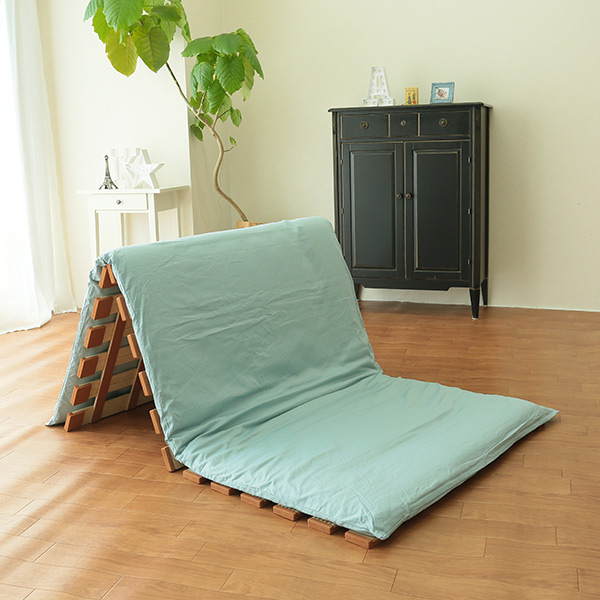 立てるだけでそのまま布団干しが出来る、3つ折れマットレスに最適なすのこベッドです。いつでも手軽に部屋干しができるので、雨天時も花粉の季節も安心です。
