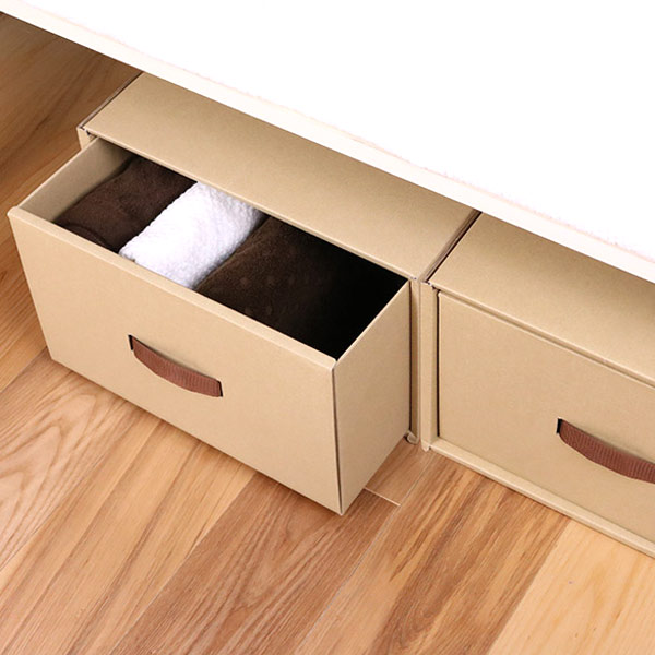 プラスチックパーツの使用を極力なくしたダンボール製なので、不要になれば簡単に処分できます。クラフト収納を使用することで、環境配慮にも繋がります。