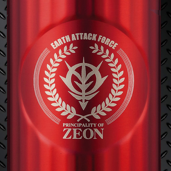 往年のガンダムファンにはたまらないコーヒーボトルです。随所に刻まれたジオン公国を象徴するエンブレムは、一点一点レーザーで印字されています。レーザー刻印ならではの鈍く重厚な輝きが上質なひとときを演出します。
