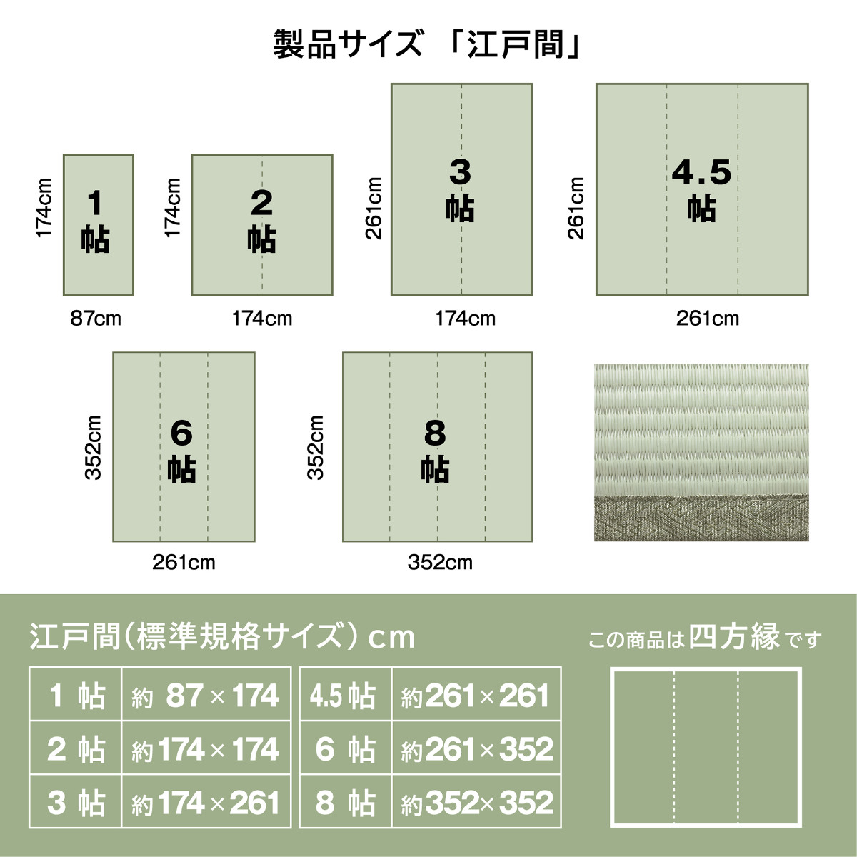 上敷き 洗えるPP製 宇治 江戸間 4.5畳 約261×261cm 抗菌 ( カーペット 和室 4.5帖 ポリプロピレン製 敷物 畳マット 畳保護 ござ マット ラグ )