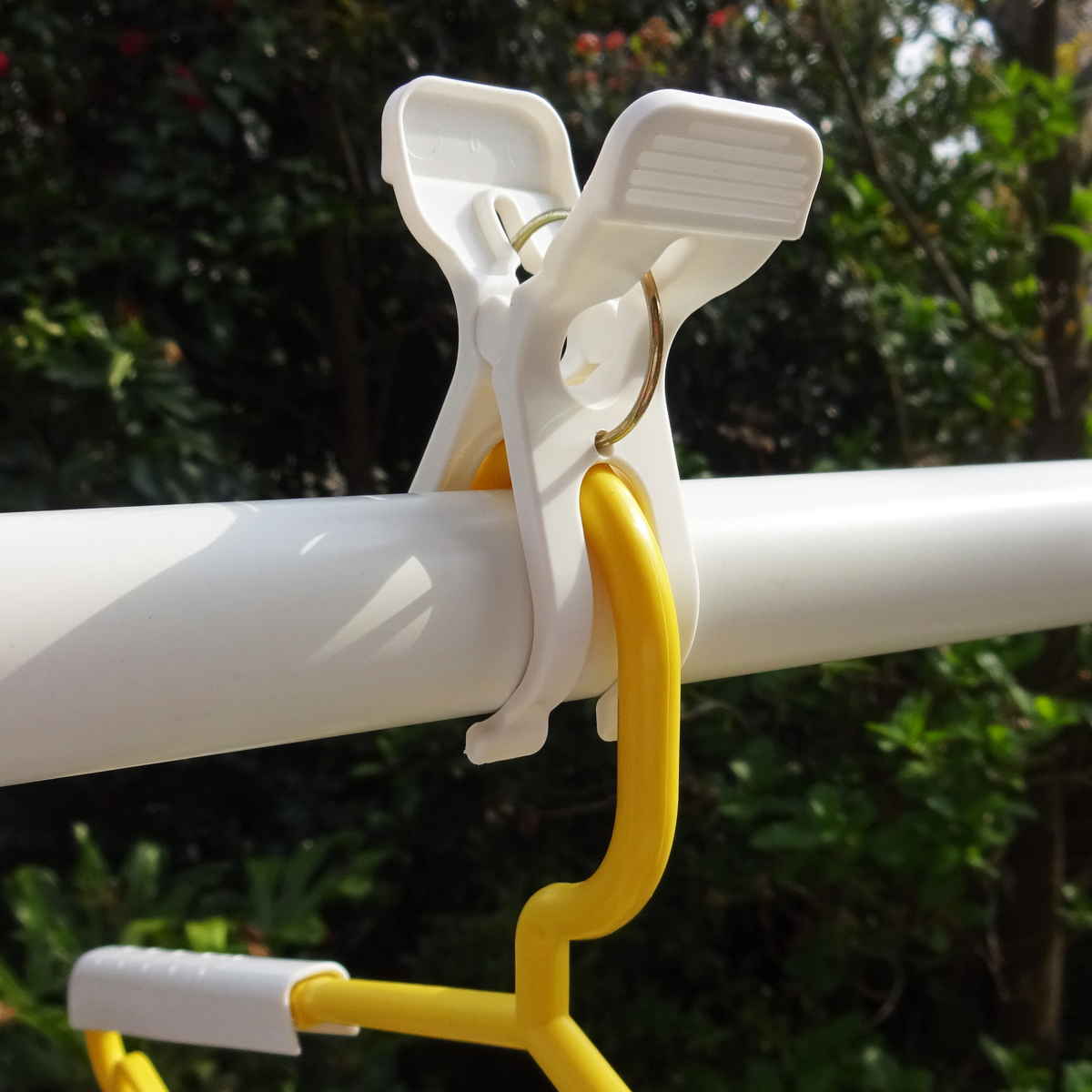 ハンガーを竿の上からしっかり固定でき、風によるハンガーの移動を防ぎます。