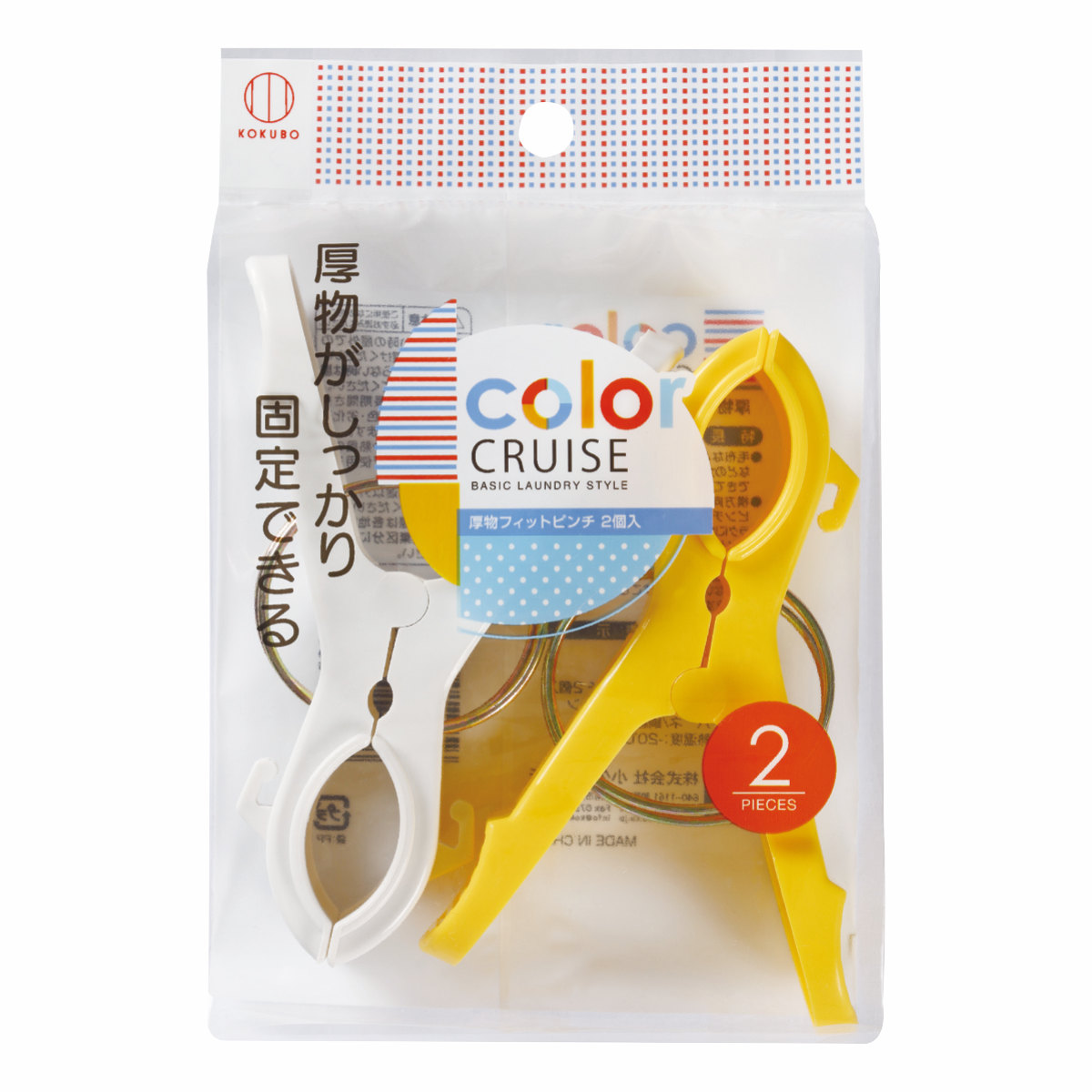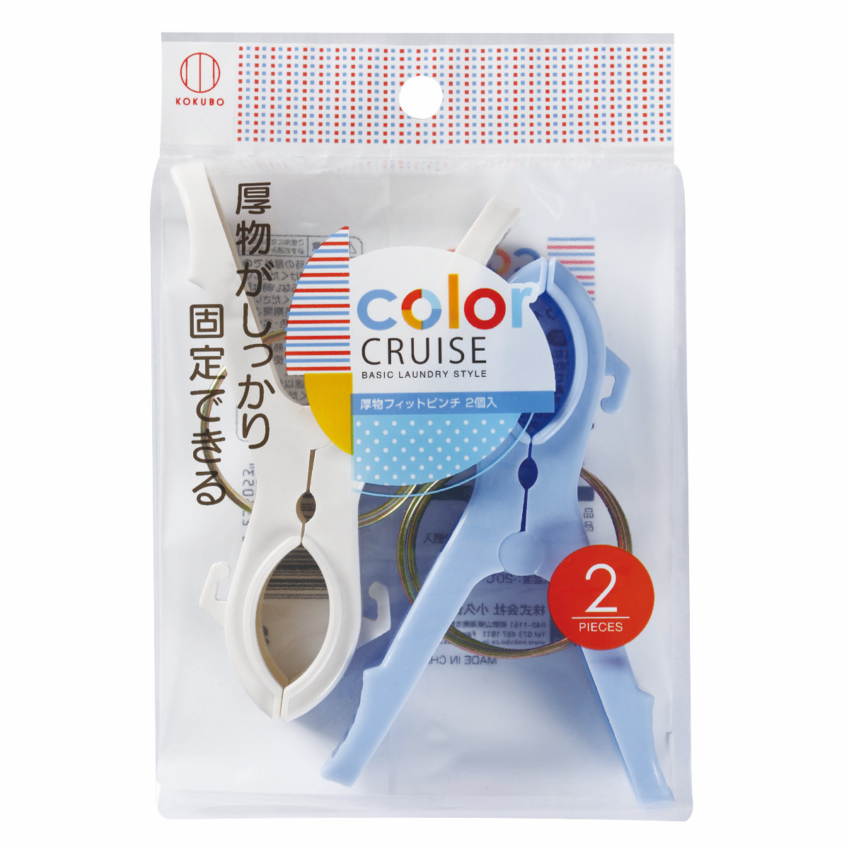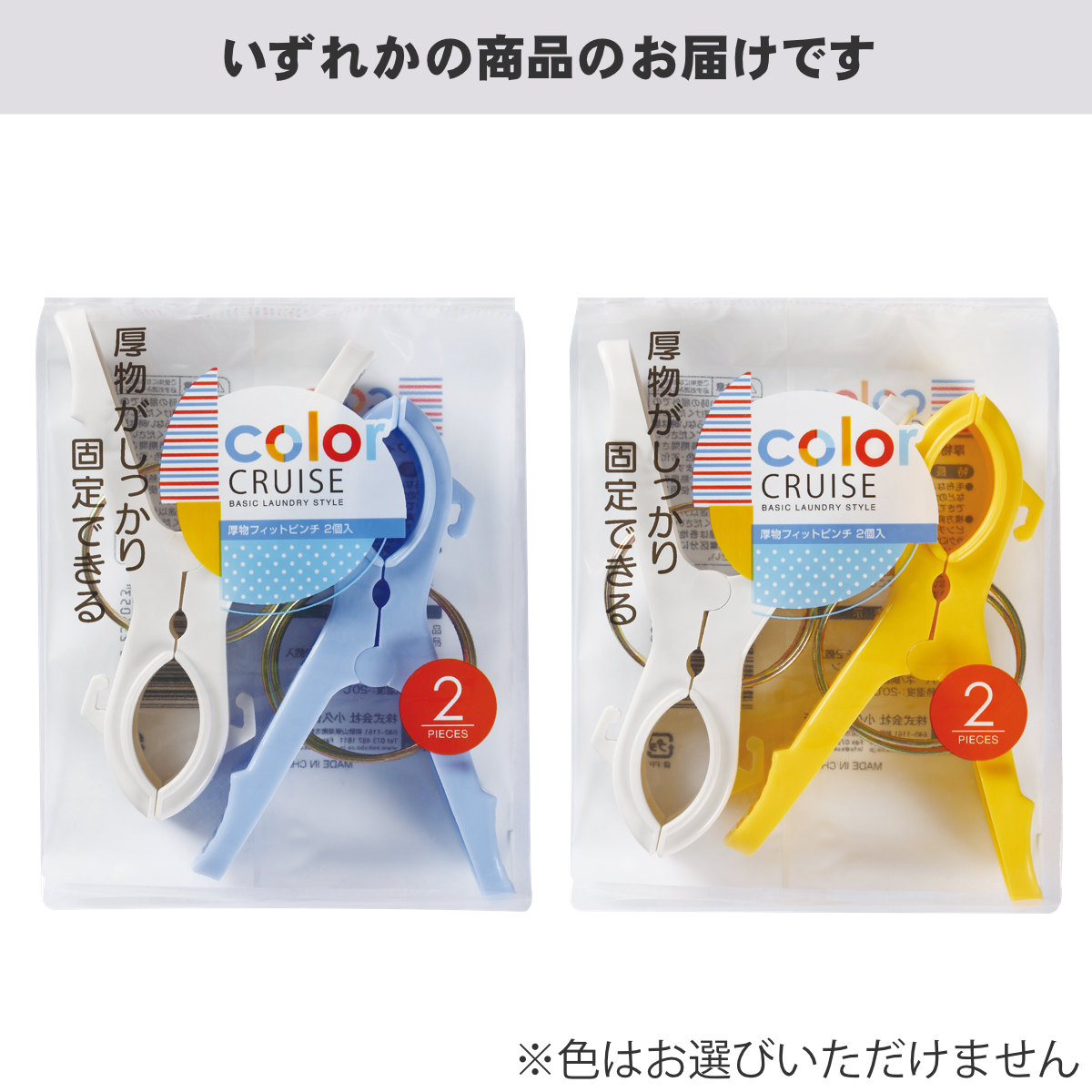洗濯バサミ 厚物フィットピンチ 2個入 color CRUISE ※色は選べません ( 洗濯ばさみ 厚物 洗濯ピンチ 2個 フック付き 竿ピンチ 2個セット 毛布 シーツ ピンチ つまみやすい )