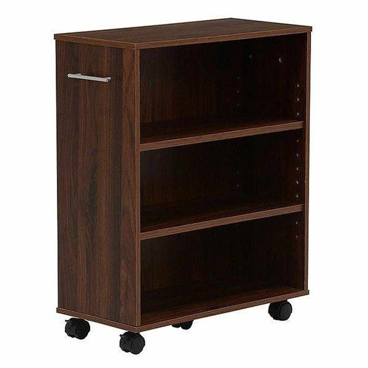 すきま収納ラック 幅26cm キャスター付 可動棚 3段 ( マガジンラック 本棚 収納棚 オープンラック クローゼット収納 隙間収納 収納 ラック シェルフ 木製 本 漫画 文庫本 コミック マンガ CD DVD ブルーレイ ) 【ブラウン】