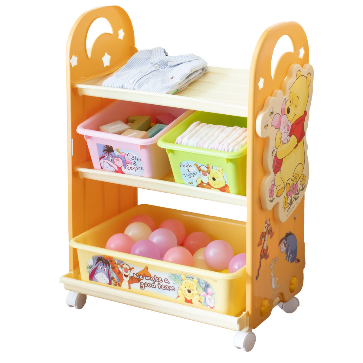 おもちゃ 収納ラック 3段 くまのプーさん トイステーション ( 収納 棚 収納ボックス おもちゃ箱 キャスター付き 絵本 ラック お片付け 子供部屋 ディズニー Disney プーさん pooh )