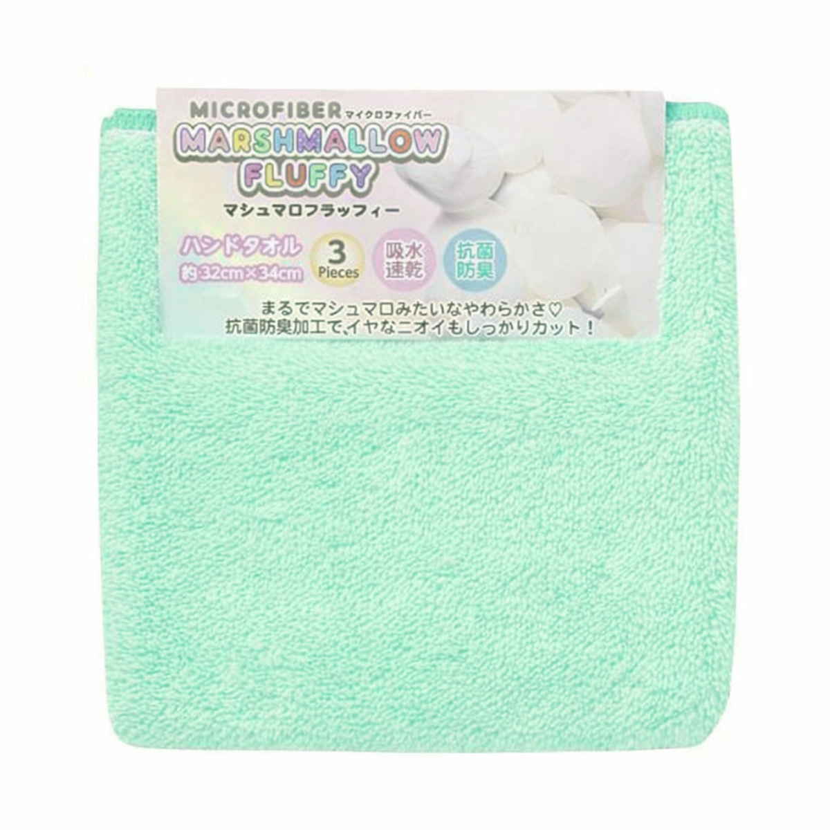 タオル マイクロファイバー ハンドタオル 3枚セット マシュマロフラッフィーカラー ( 手拭きタオル 吸水 速乾 洗面タオル デイリータオル タオルハンカチ ハンカチタオル 吸水速乾 抗菌 防臭 抗菌防臭 無地 シンプル バス用品 ) 【グリーン】