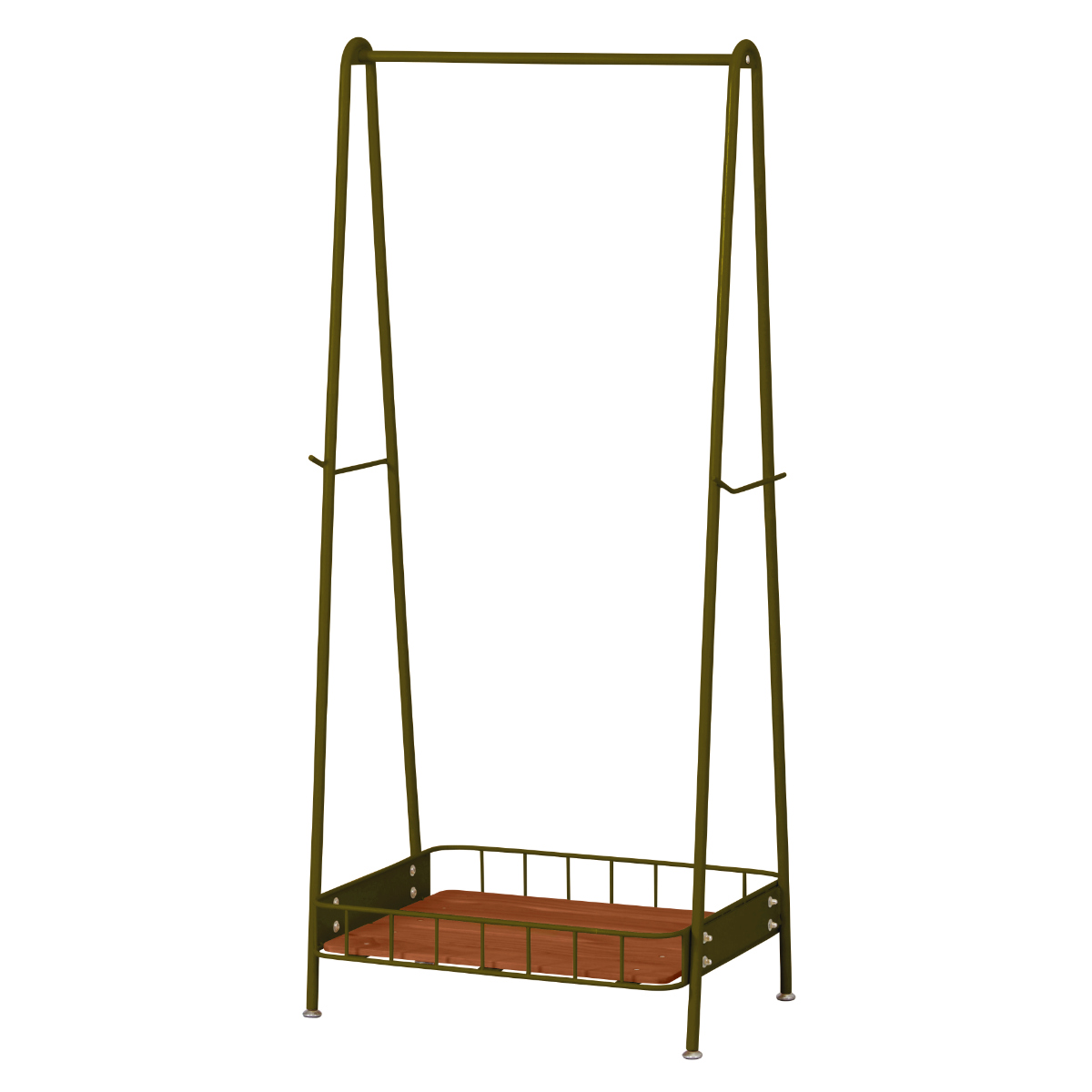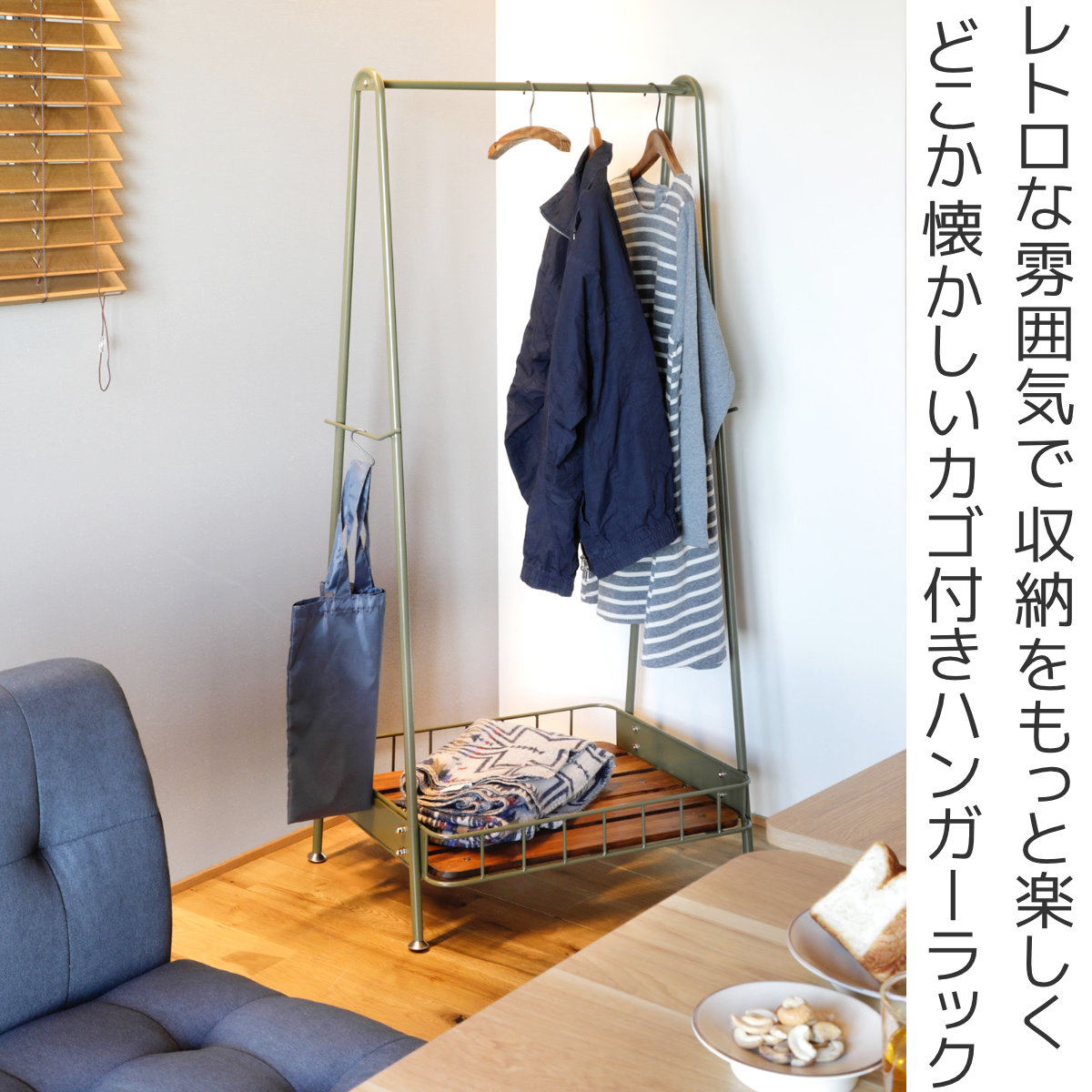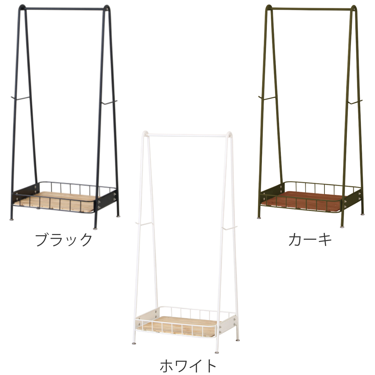 ハンガーラック カゴ付 スチールフレーム 約幅62cm ( 洋服掛け ハンガー掛け バッグ置き 小物置き 収納 バスケット ポールハンガー A型 コートハンガー コート掛け 玄関 ブラック ホワイト カーキ ) 【カーキ】