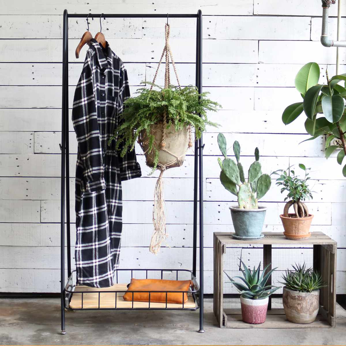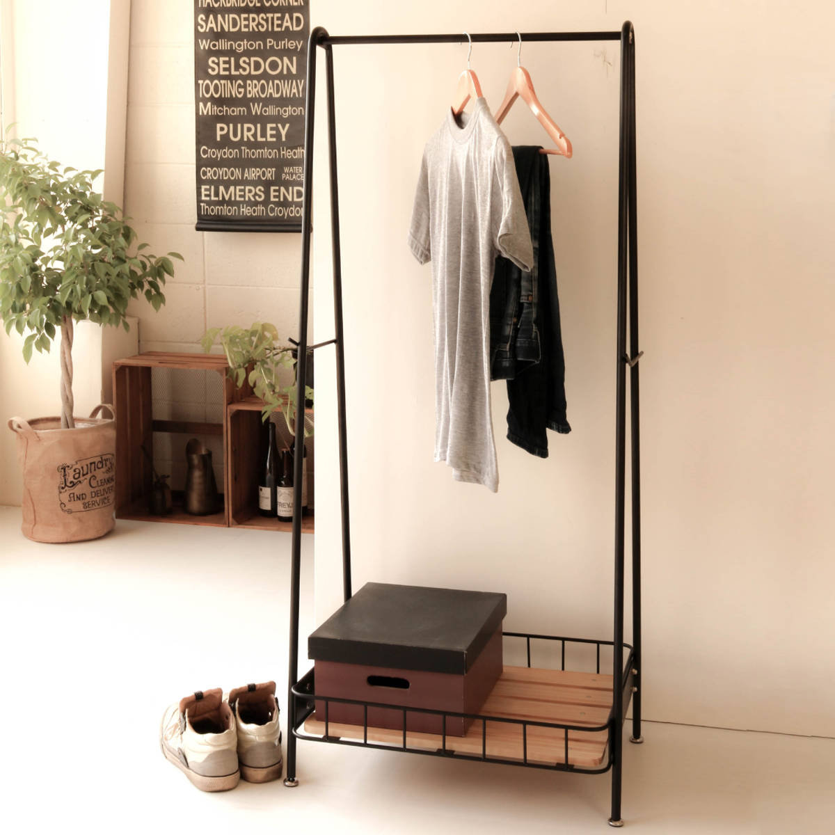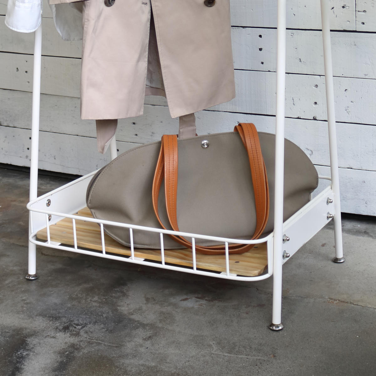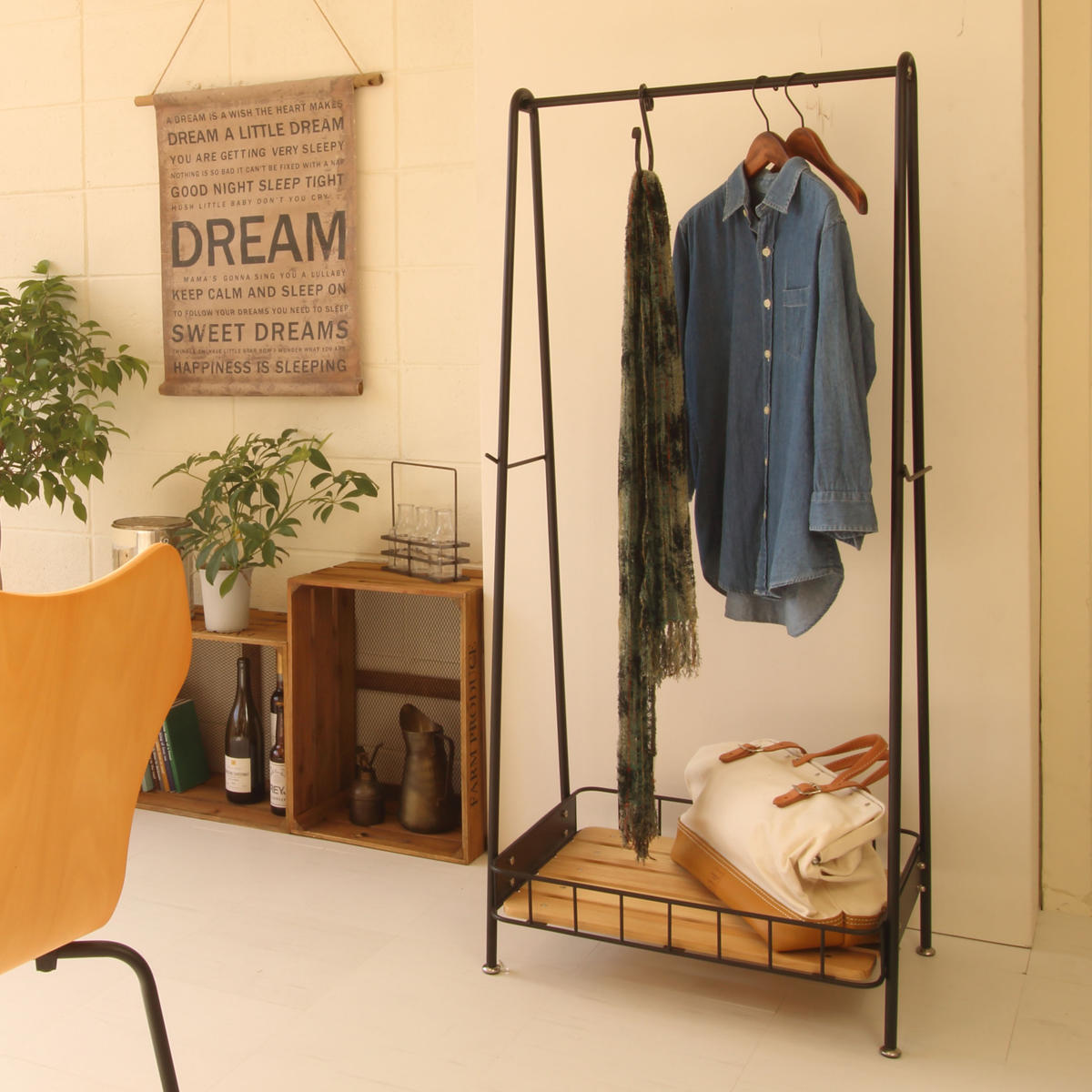 ノスタルジックな自転車カゴをイメージしたハンガーラックです。スチール製のフレームとパインウッドの底板の組み合わせがどこか懐かしい雰囲気をお部屋に漂わせます。