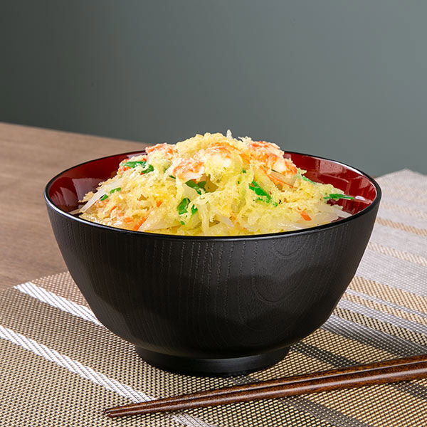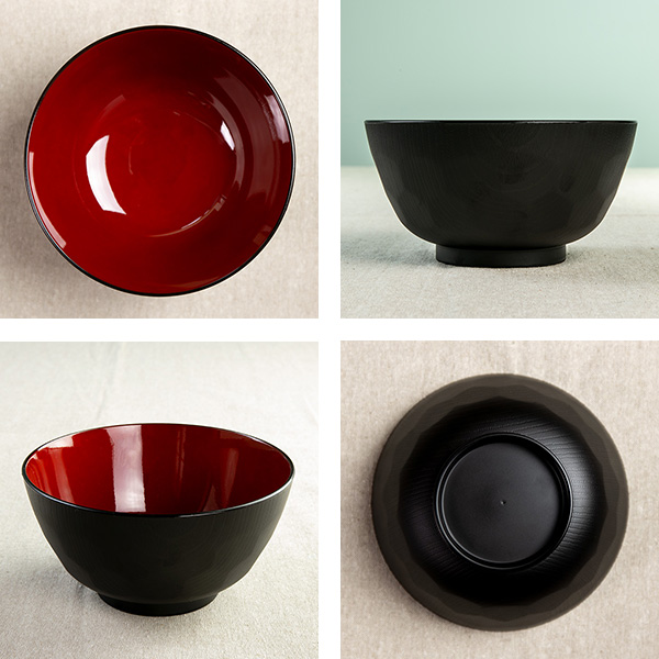 外黒・内朱の定番カラーと伝統の亀甲デザインが和の食卓によく馴染みます。