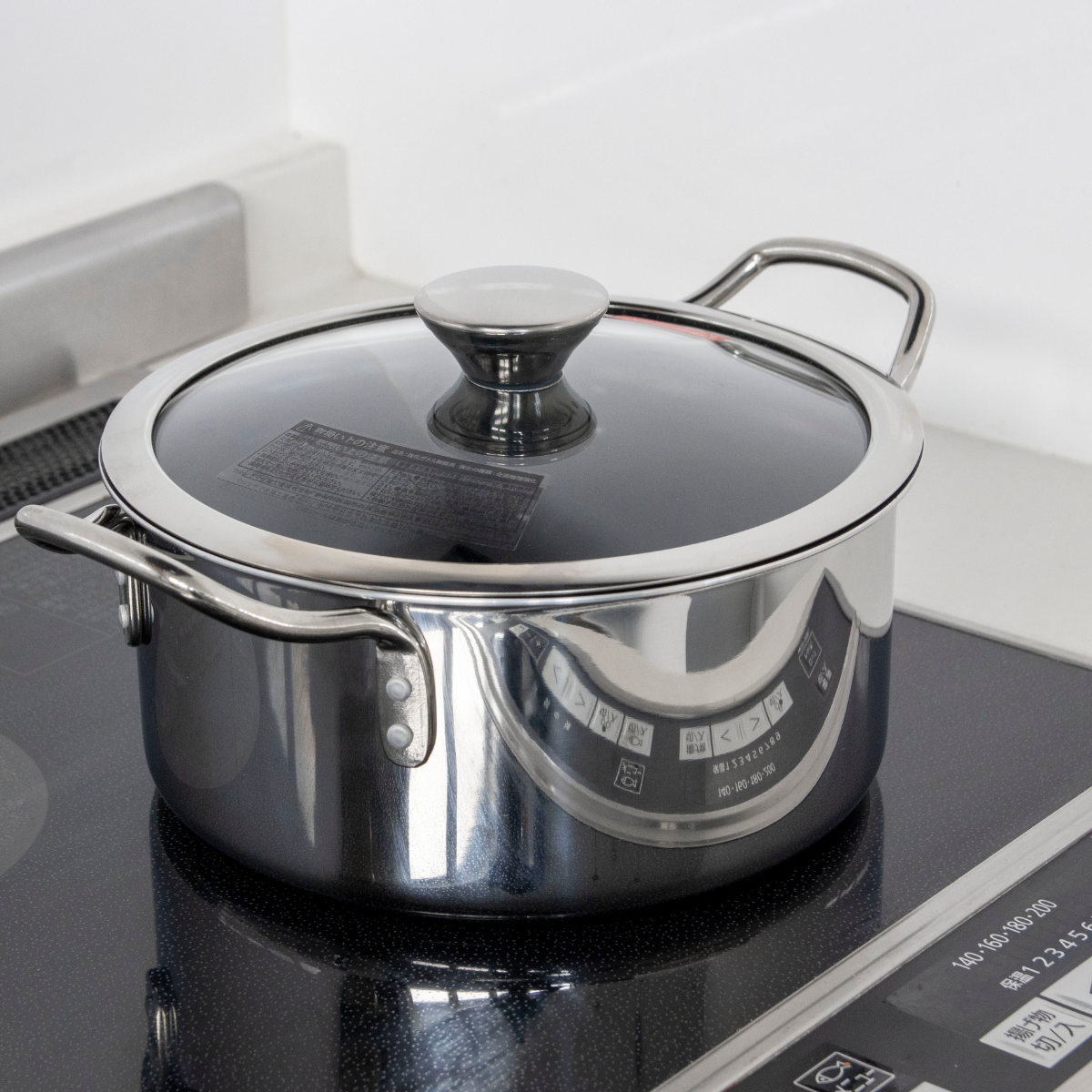 IHクッキングヒーター・ガスコンロをはじめオール熱源に対応しています。20cmは、3~4人前の汁物や煮物が作りやすいサイズです。