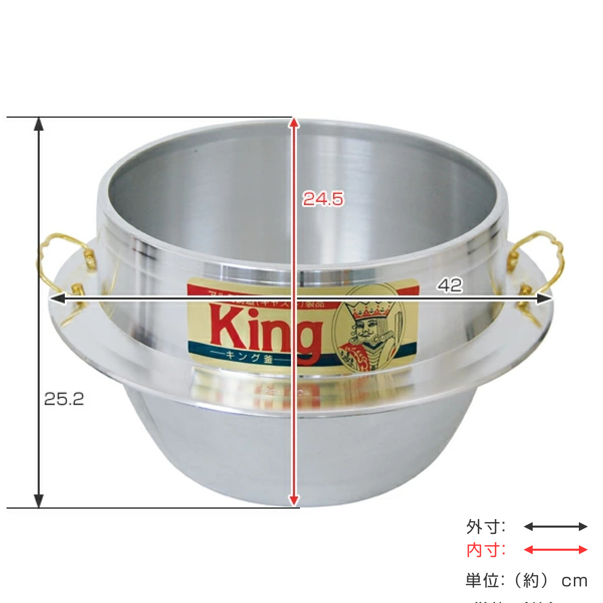 ご飯釜 キング カン付き 33cm 4升4合炊き 直火専用 ( 直火対応 ご飯鍋 ご飯釜 直火専用釜 炊飯釜 羽釜 本格釜 釜炊き ごはん鍋 炊飯用鍋 炊飯用なべ お釜 業務用 ウルシヤマ金属 )