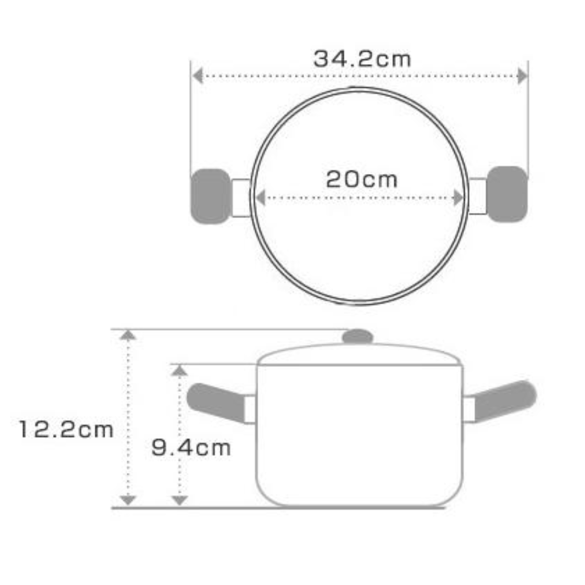 | 材質 | 本体:5層クラッド材(外側:ステンレス、内側:アルミニウム) 本体内面:ラセン研磨仕上げ 本体外面:ミラー研磨仕上げ 蓋:ステンレス鋼 ハンドル:フェノール樹脂・66ナイロン 蓋ツマミ:フェノール樹脂 |