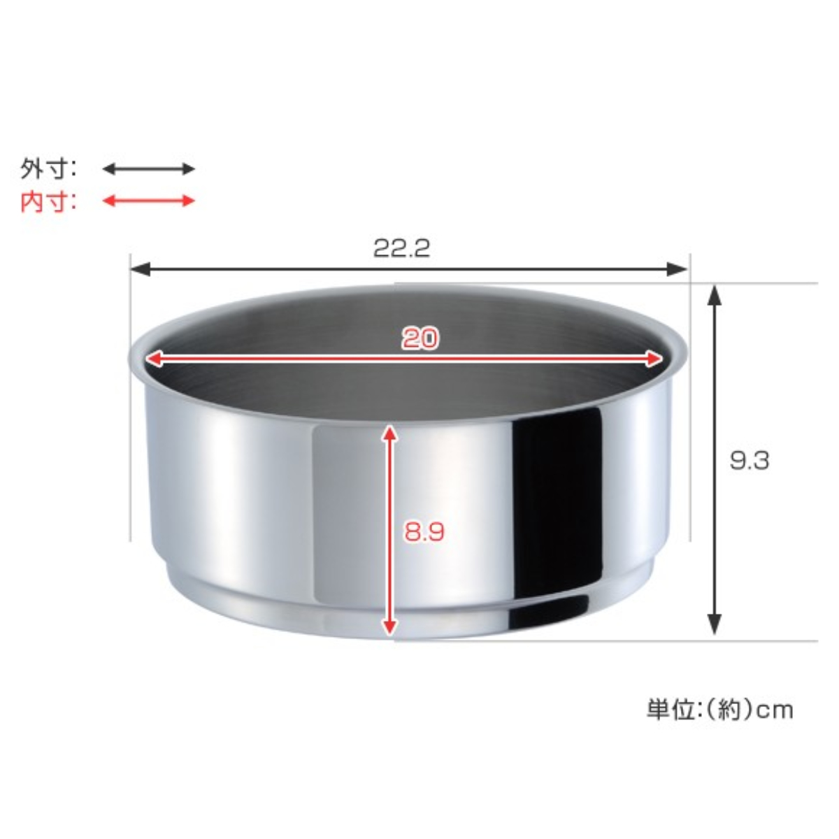 | 材質 | 本体:ステンレス鋼 本体内面:ラセン研磨仕上げ 本体外面:ミラー研磨仕上げ ハンドル:ステンレス鋼 |