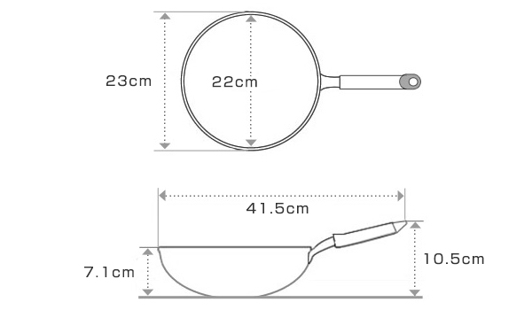 | 材質 | 本体:アルミニウム合金(底厚3.1mm) 本体内面:ふっ素樹脂塗膜加工 本体外面:研磨仕上げ ハンドル:木材 フック部分:66ナイロン |