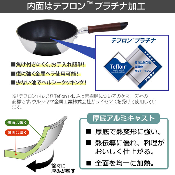 ●内面はテフロンプラチナ加工で金属ヘラも使えます。