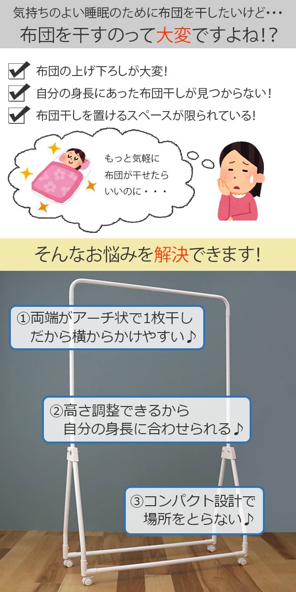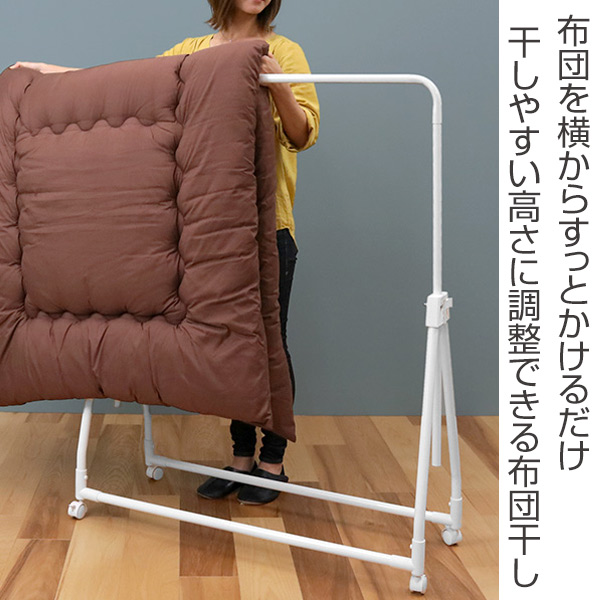 布団干し 高さの替えれる室内ふとん干し ふとん1枚干し 当店オリジナル商品 ( ふとん干し 布団干し台 物干し 布団干しスタンド 室内 伸縮 布団 ふとん 折りたたみ コンパクト パイプ スタンド 物干しスタンド 物干し台 軽量 キャスター付き 鉄製 部屋干し )
