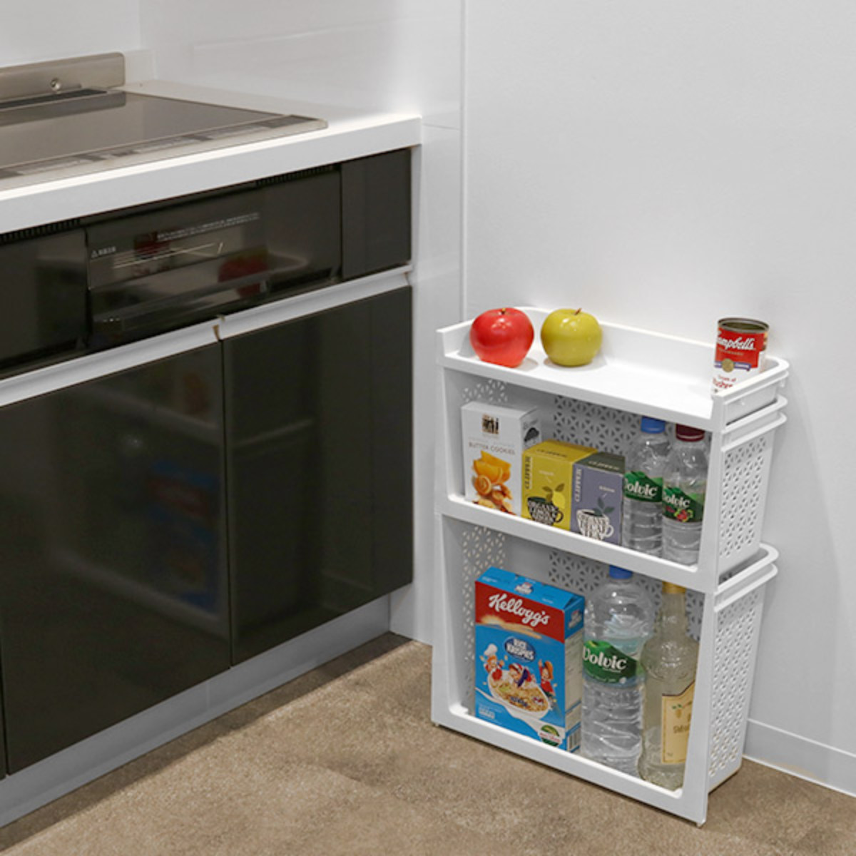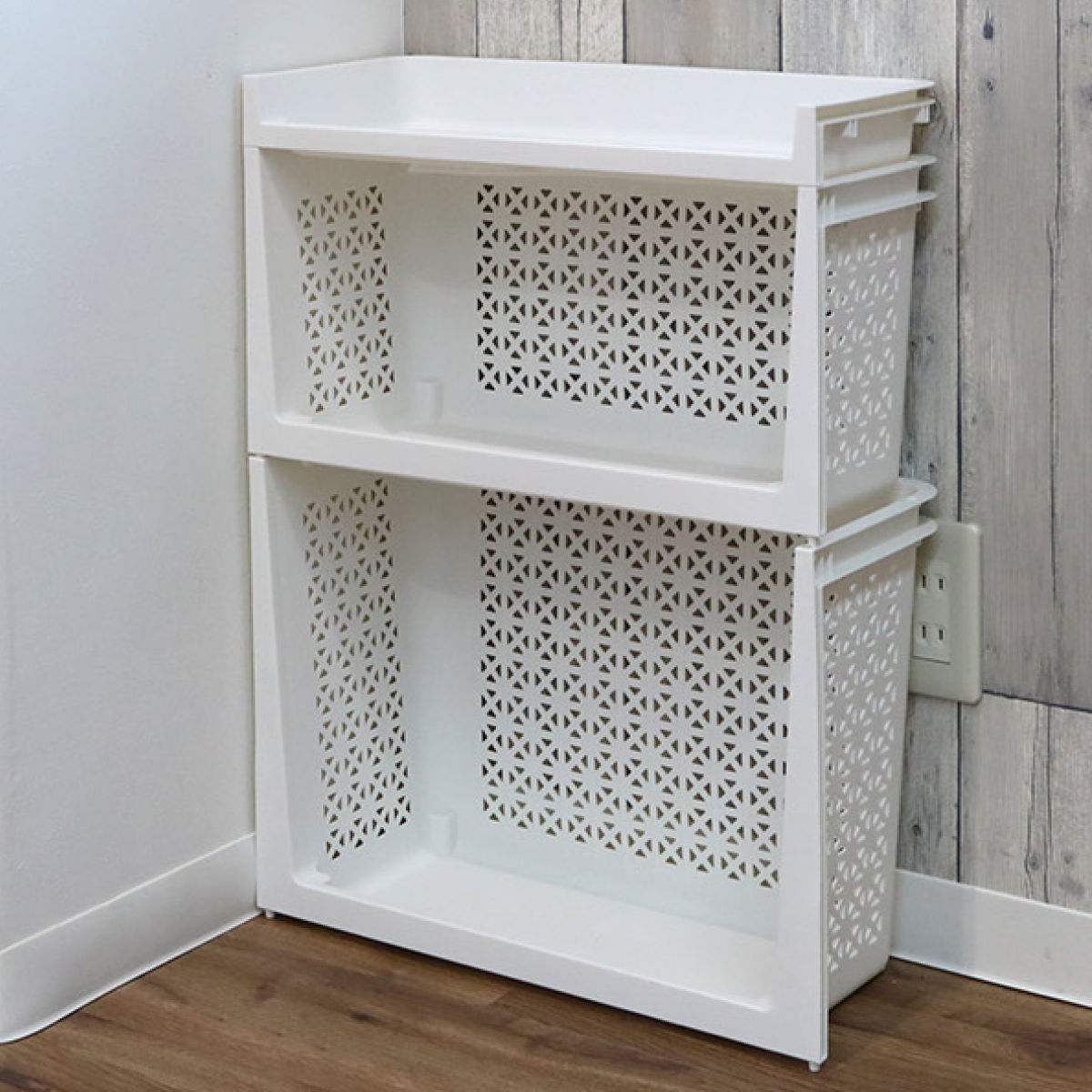ラック 幅46×奥行19×高さ33cm ラコン 積重ねラック ハーフ 深型 ホワイト ( 収納 プラスチック 収納ラック スタッキング 積み重ね 隙間 キッチン ストッカー ランドリー ボックス 用品 カゴ スリム ) 【ホワイト】