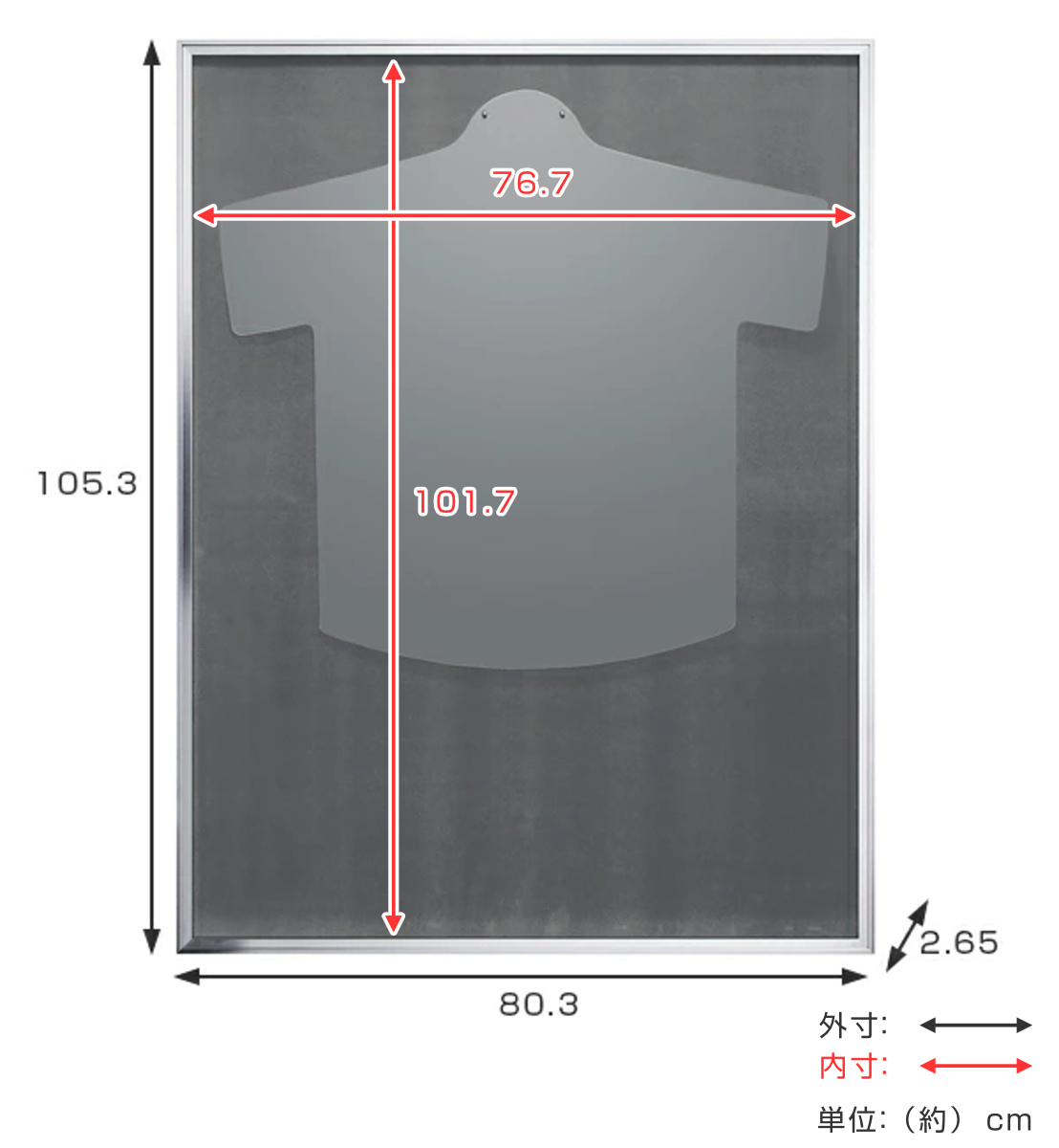ユニフォーム 収納 ユニフォーム額 L111 S-GY Lサイズ ( ユニフォーム額縁 額 ハンガー付き 日本製 壁掛け ユニホーム フレーム グレー 幅80.3cm サイン入りユニホーム 保管 ディスプレイ 日本代表 サッカー 野球 ライブT )