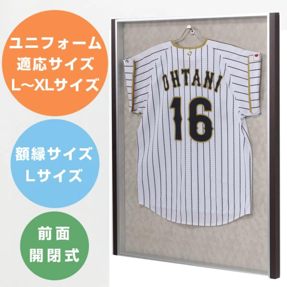 ユニフォームやお気に入りのTシャツなどを飾って楽しめるユニフォーム額です。 好きな選手のものや、お子様が部活で使っていたものなどを記念に飾っておくことができます。スポーツ好きの人へのプレゼントとしてもおすすめです。 また、こちらの額縁は前面開閉式なので中身を交換する際も簡単にできます。