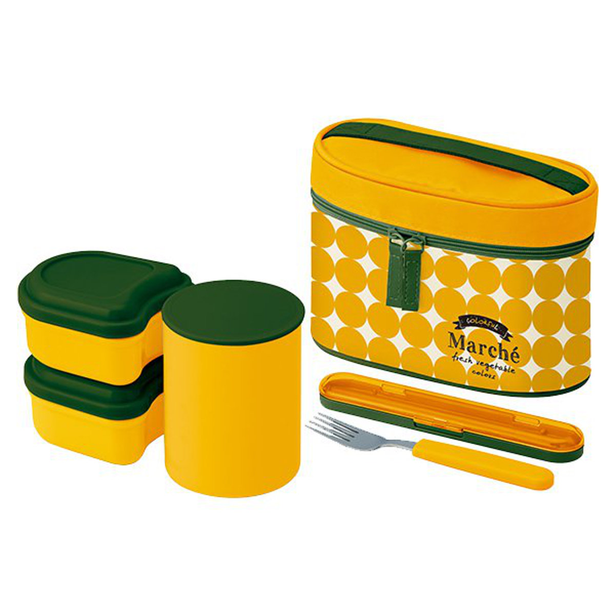 保温弁当箱 保温ジャー付きランチボックス マルシェ 560ml 保温 保冷 フォーク付き アボカド ( お弁当箱 ランチボックス 超軽量 大人 コンパクトタイプ 弁当箱 ケース付 バッグ付き コンパクトタイプ 弁当箱 シンプル 使いやすい ) 【かぼちゃ】