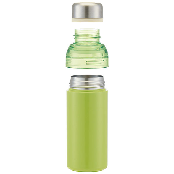 | 材質 | フタ・飲み口フタ:ポリプロピレン パッキン:シリコーンゴム 上本体:PET 口がね・内びん:ステンレス鋼 下本体:ステンレス鋼(アクリル樹脂塗装) 底板:熱可塑性エラストマー |