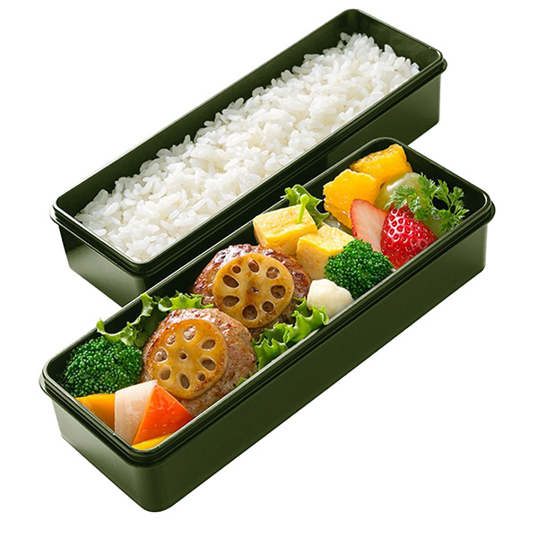 ●ピタッと密着するシリコン製のシールフタで汁もれしにくく、持ち運びも安心な2段ランチボックスです。