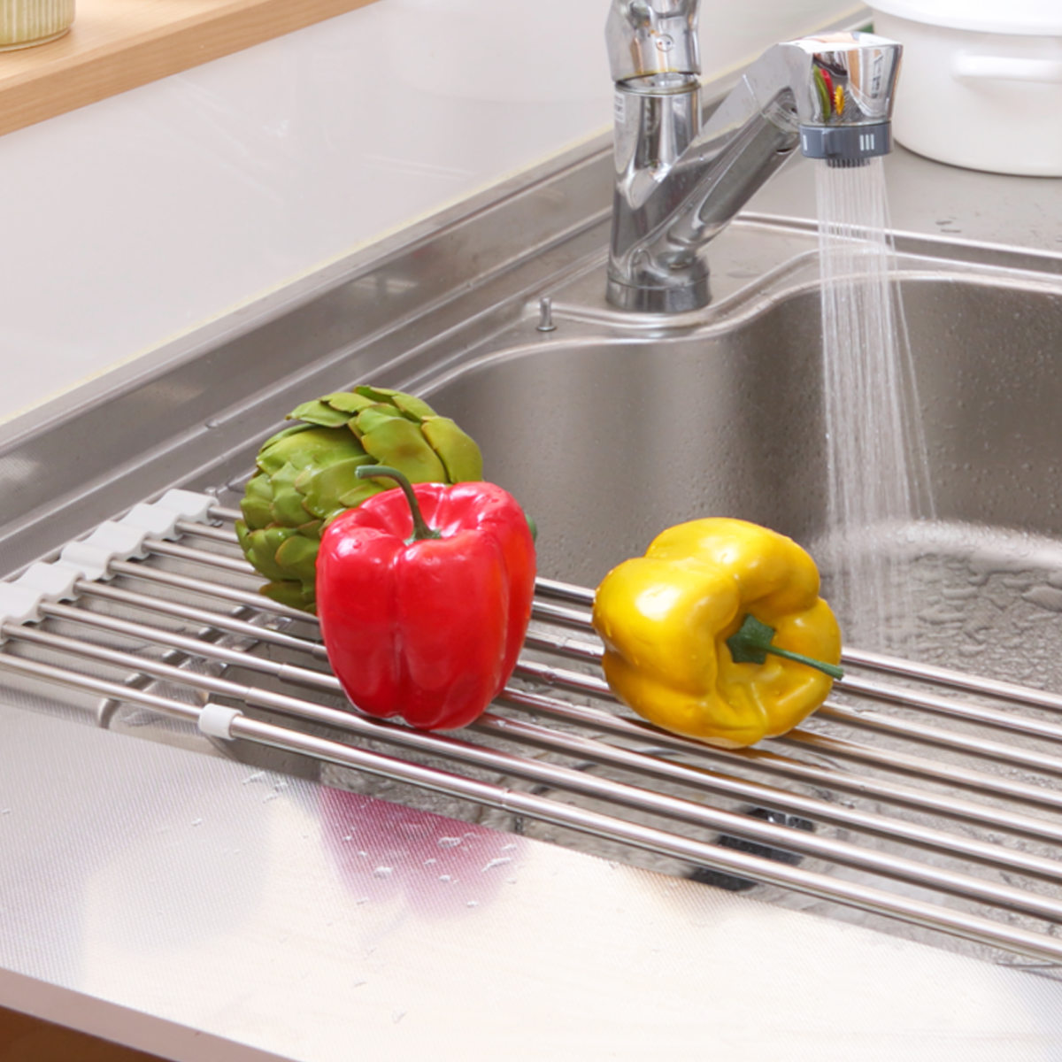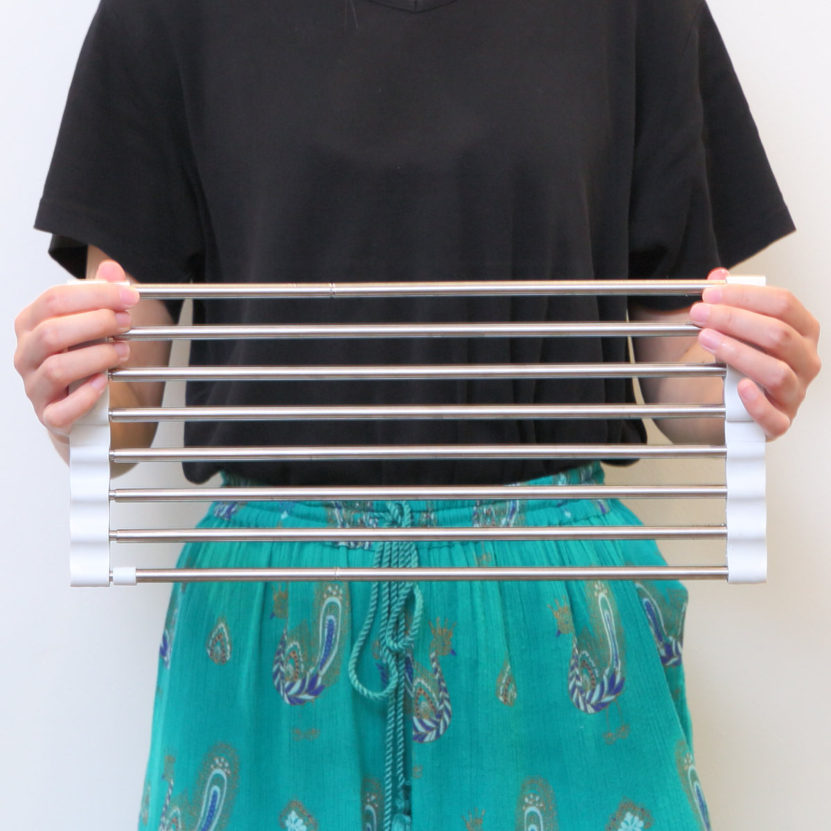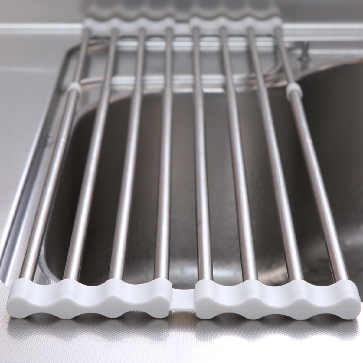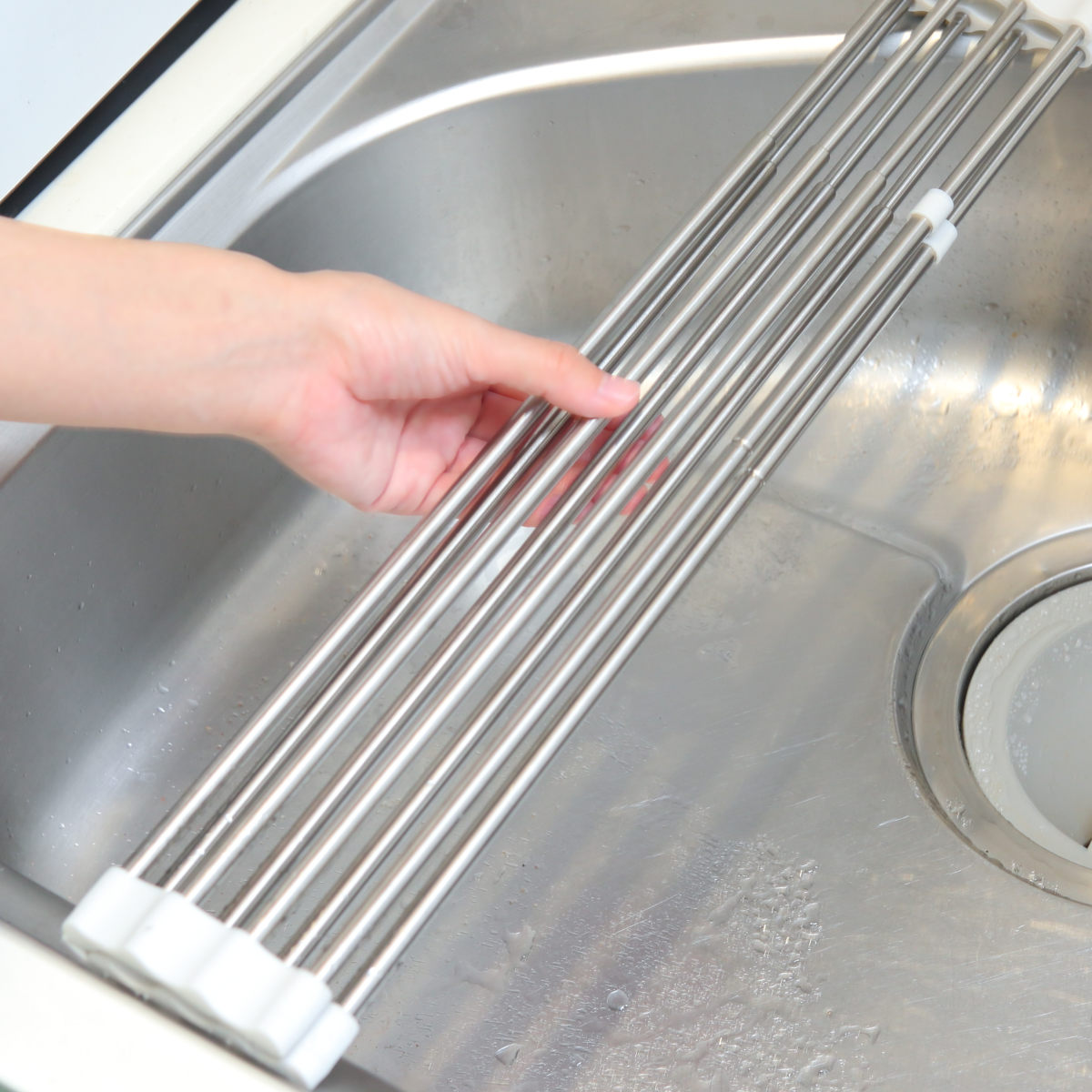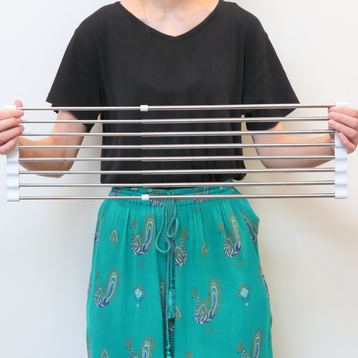 必要な時にシンク上に広げるだけでスペースを有効活用できるスライドラックです。限られているキッチンのスペースを最大限活用でき、台所仕事がより快適になります。