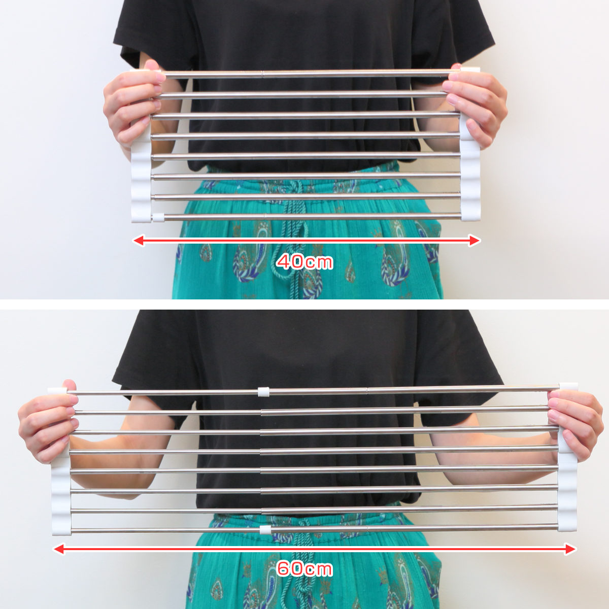 ラックの奥行は40~60cmまで伸縮させることができるので、ご家庭のシンクサイズに合わせて調節が可能です。