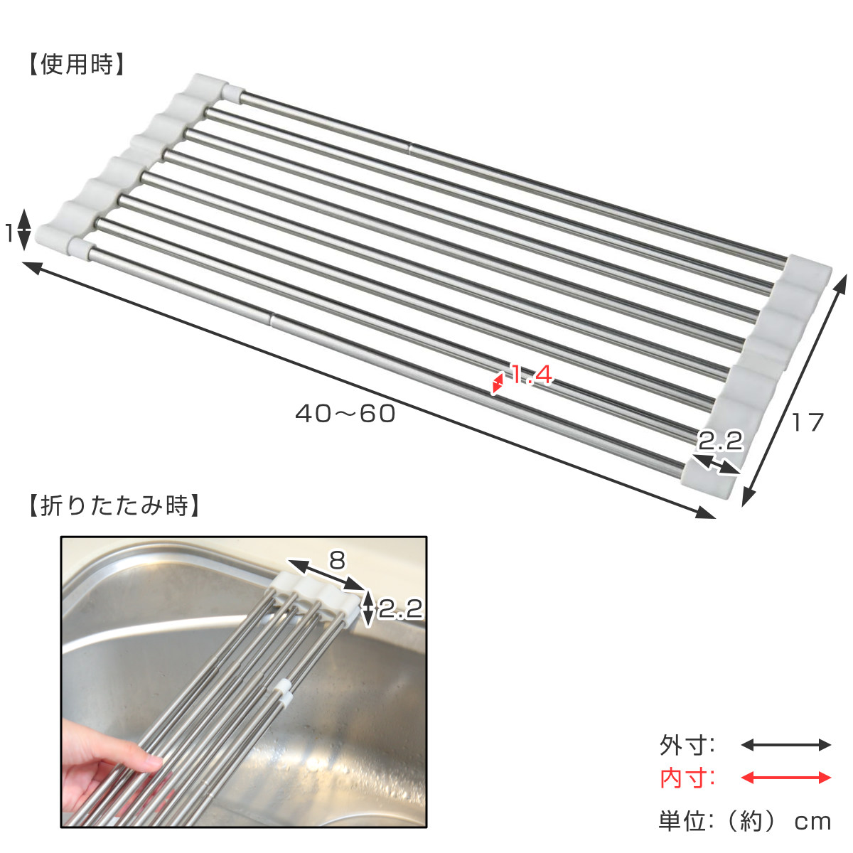 スライドラック 伸縮タイプ たためるシンクラック 奥行き40~60cm ( 水切りトレー ステンレス シンクラック 水切りラック シンク上 伸縮 折りたたみ 抗菌 たためる 折り畳み水切りラック 食器 乾燥 野菜 洗う 作業台 省スペース )