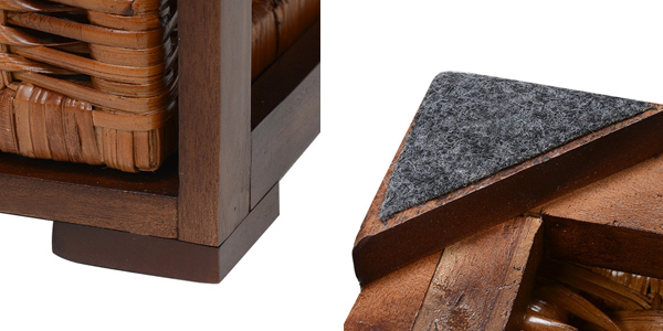 ラタンなので通気性がよく丈夫で、湿気の多い脱衣所でも清涼感を保ち、お手入れも簡単で衛生的です。天然木が高級感ある仕上がりで、リビングや寝室にもオススメです。